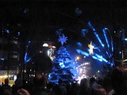 Às 20:30 começa o espetáculo de acendimento de acendimento das luzes. Um globo todo iluminado desce no meio da avenida e uma fada, no estilo ‘Cirque du Soleil’, desce em uma fita e o espetáculo começa. A árvore se acende.