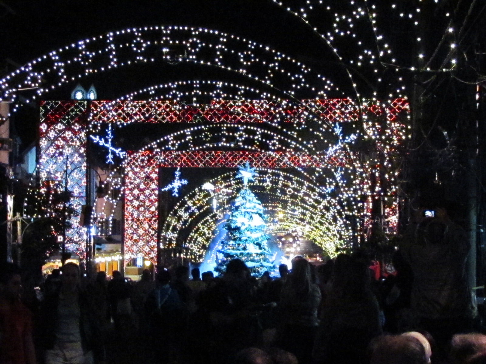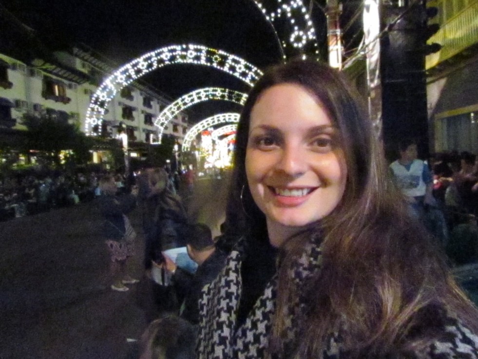 Depois do jantar seguimos a pé em direção à av. das Hortênsias onde acontece o acendimento das luzes e em seguida o desfile. Todas as luzes da cidade ficam iluminadas e o caminho até lá é lindo.