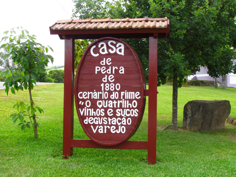 Outro lugar que gostamos bastante foi a Cantina Strapazzon onde foi filmado o filme o Quatrilho. Os jardins são super bem cuidados e há um rosedal lindo entremeado por margaridas que leva até a entrada da casa de pedras, que foi cenário do filme.