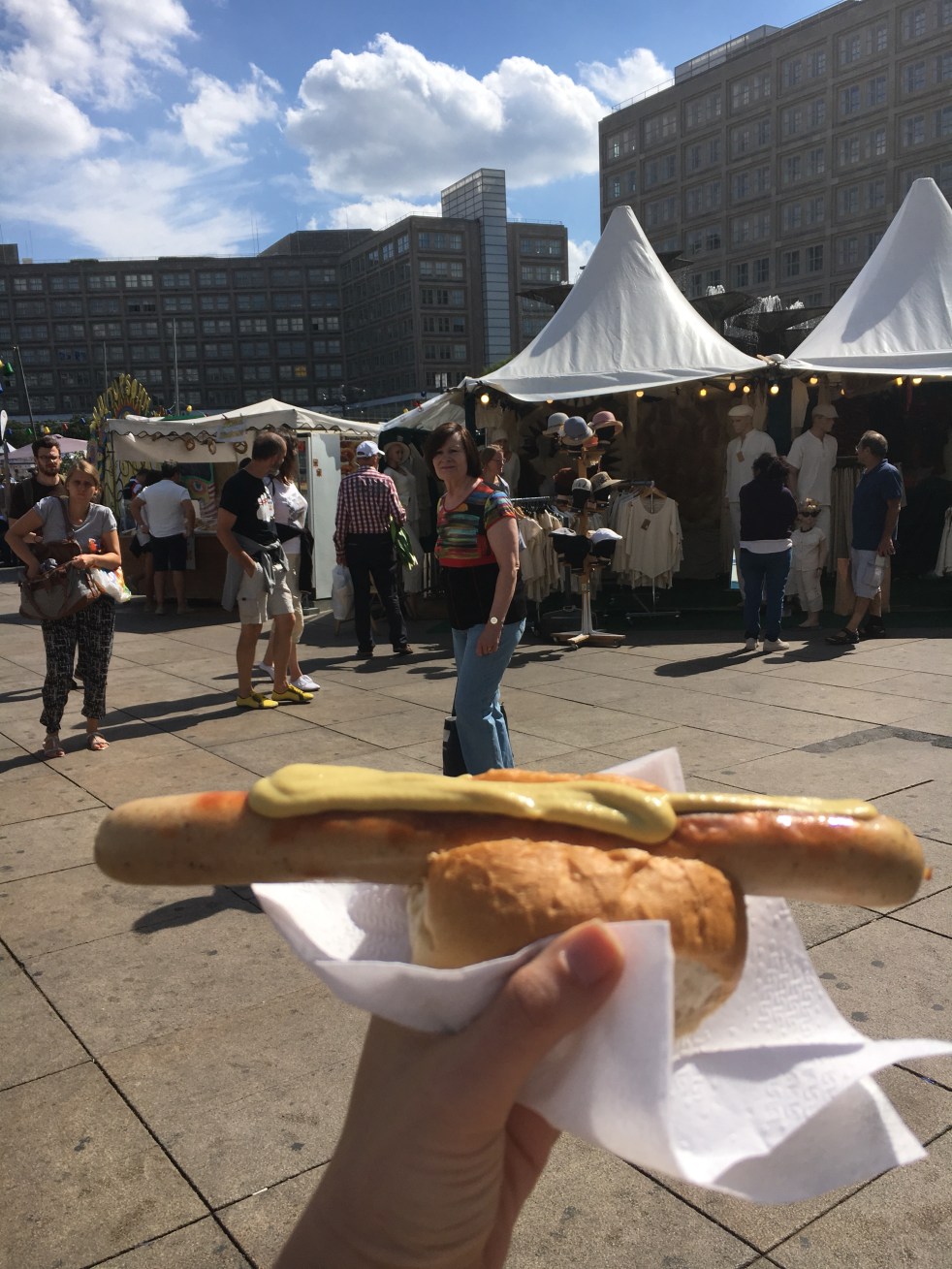 Nos meses de verão todo dia acontece uma feira com vários stands de comidinhas, ideal se você ainda não provou o famoso salsichão alemão: vá de Bratwurst no pão com bastante mostarda.