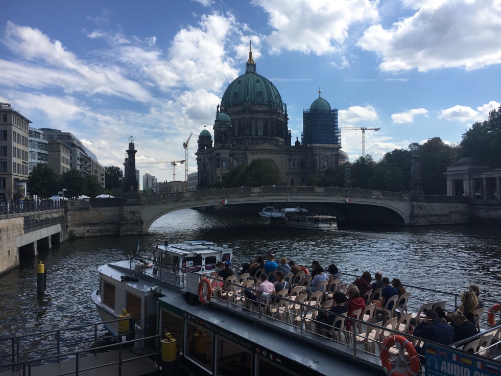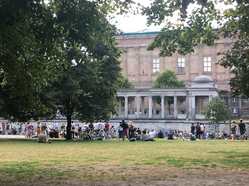 Tem sempre um músico de rua por lá para animar as tardes enquanto você aprecia uma cervejinha ou a vista do rio Spree e da Ilha dos Museus.
