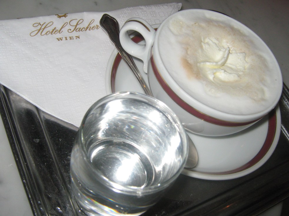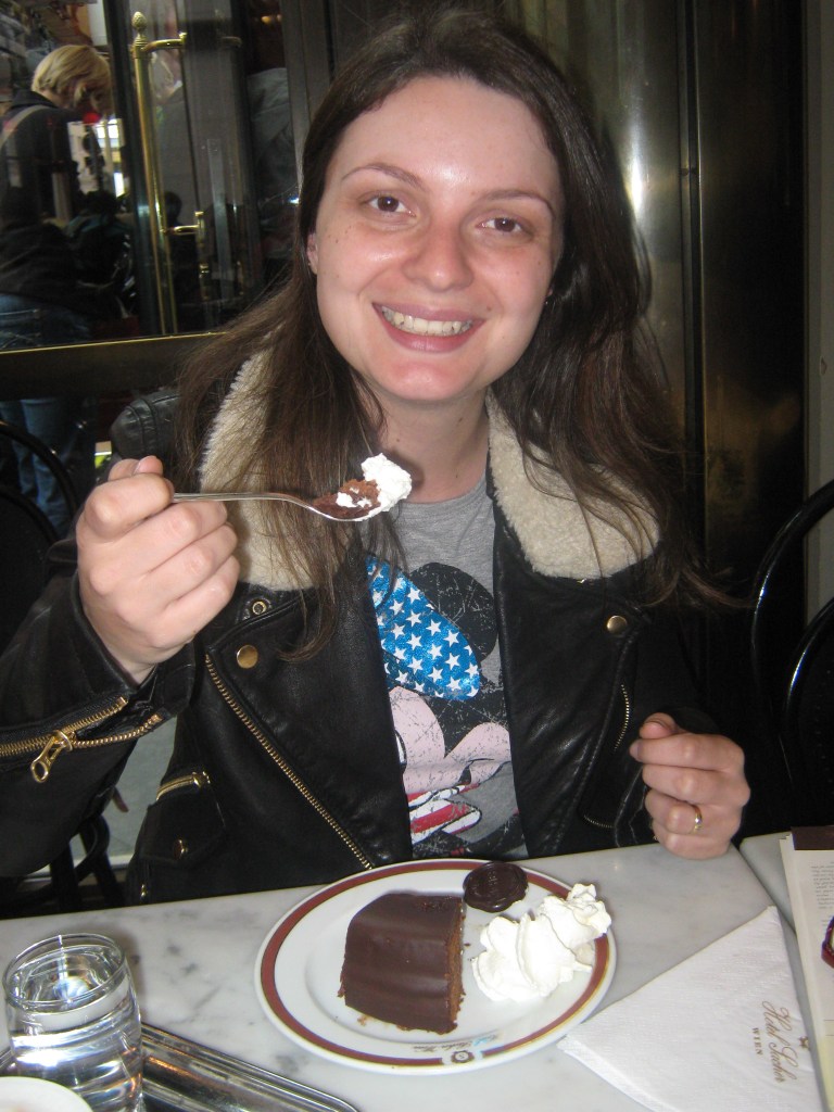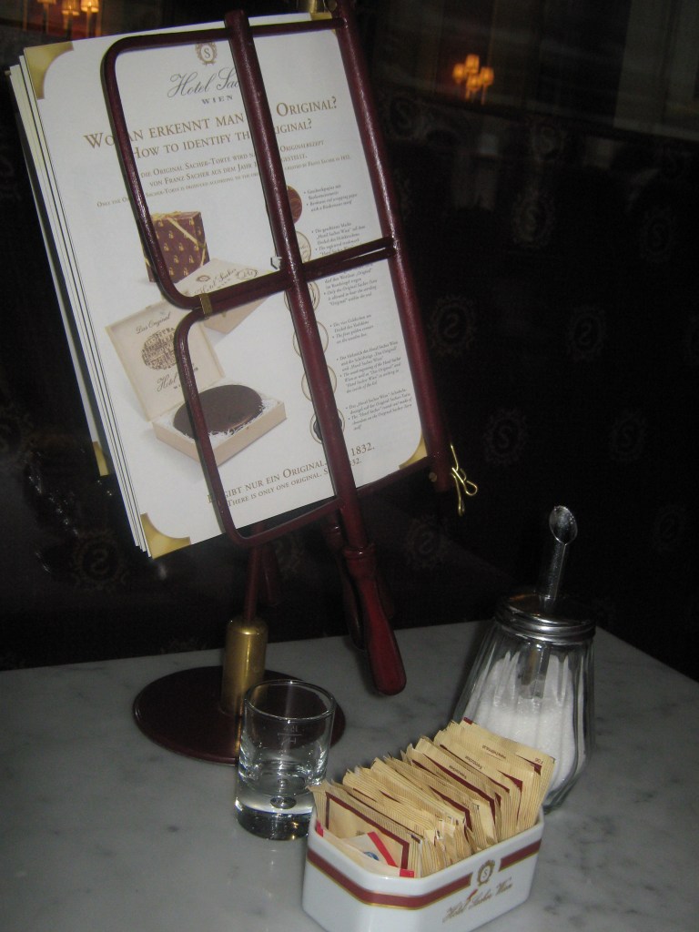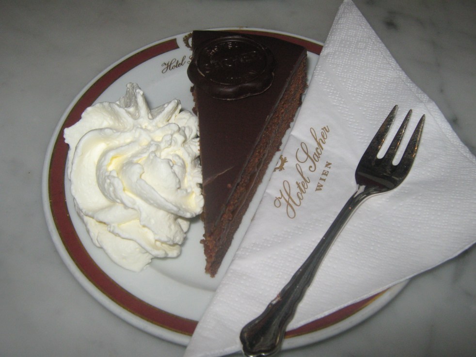Enquanto esperávamos a bilheteria da Ópera abrir demos uma volta no quarteirão e nos deparamos com uma pequena fila na calçada para entrar em um café. Logo percebemos que era o Café Sacher, localizado dentro do Hotel Sacher e famoso por ser o possuidor da receita original da Sacher Torte. Hoje em dia o hotel está todo renovado e ganhou mais fama ainda com a legendária entrevista de John Lennon e Yoko Ono sob os lençóis.