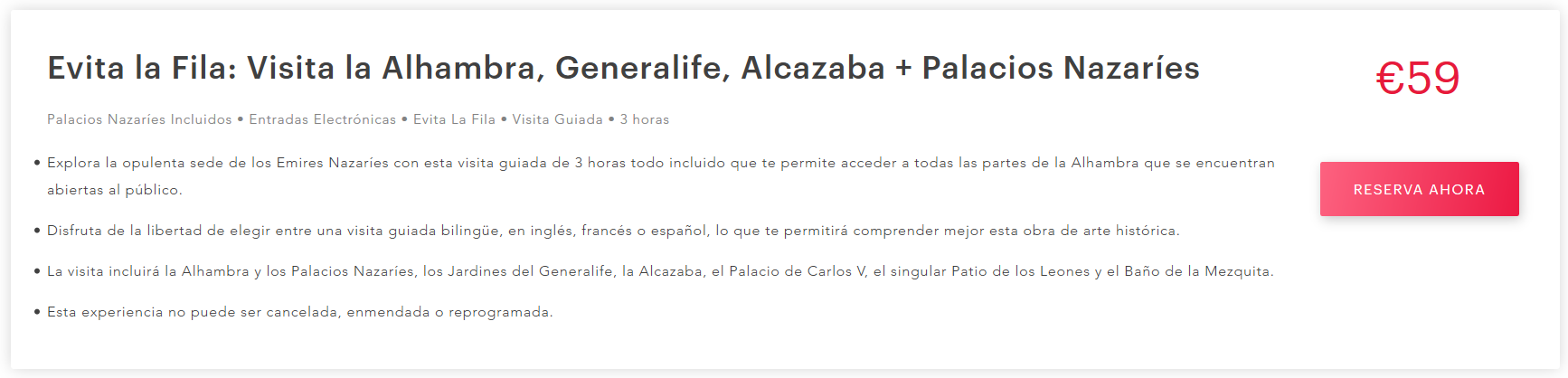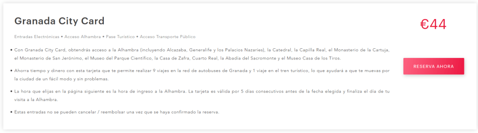 Se escolher com tour guiado dentro da Alhambra, sai um pouco mais caro, mas os Palácios já estao incluídos.