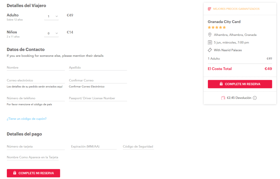 Selecione a data, o horário que você deseja visitar o parque e para o “Granada City Card” nao esqueça de incluir os Palacios Nazaríes: