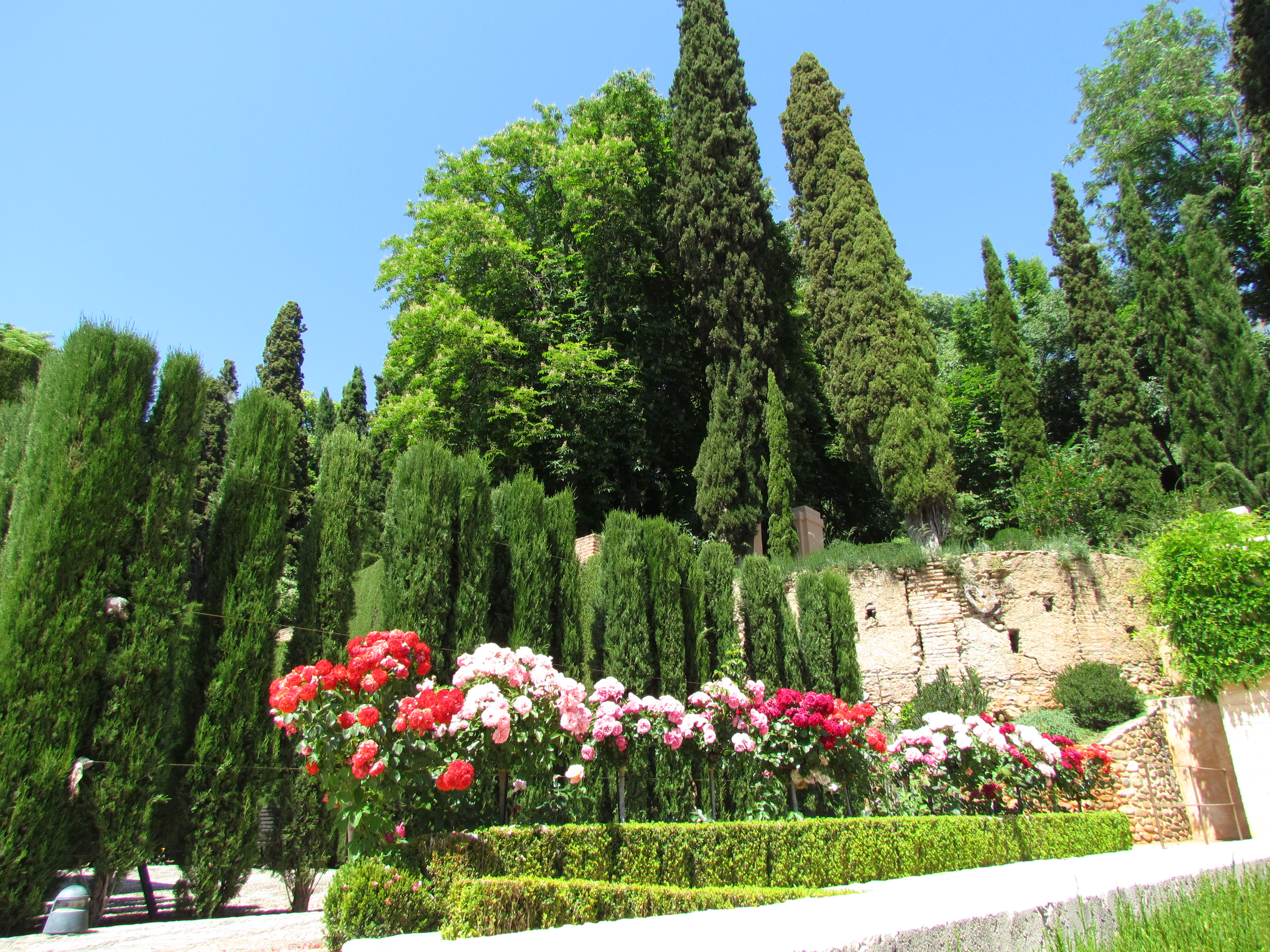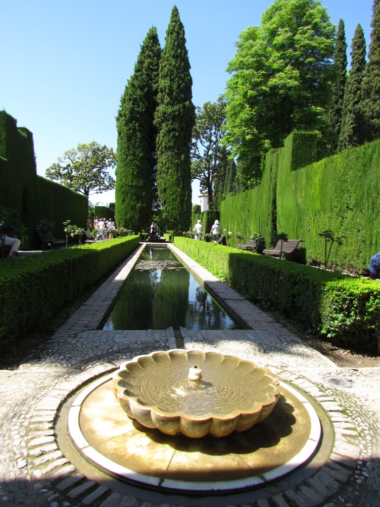 Generalife é palácio de verão dos emires. Trata-se de uma vila entremeada por jardins, pátios, fontes e construções arquitetônicas incrível. Dá pra ver pela foto acima que ele fica “fora” da cidadela murada, mas ao mesmo tempo conecatada à ela. A variedade de flores e cores do jardim é deslumbrante e prepare-se para tirar milhares de fotos.