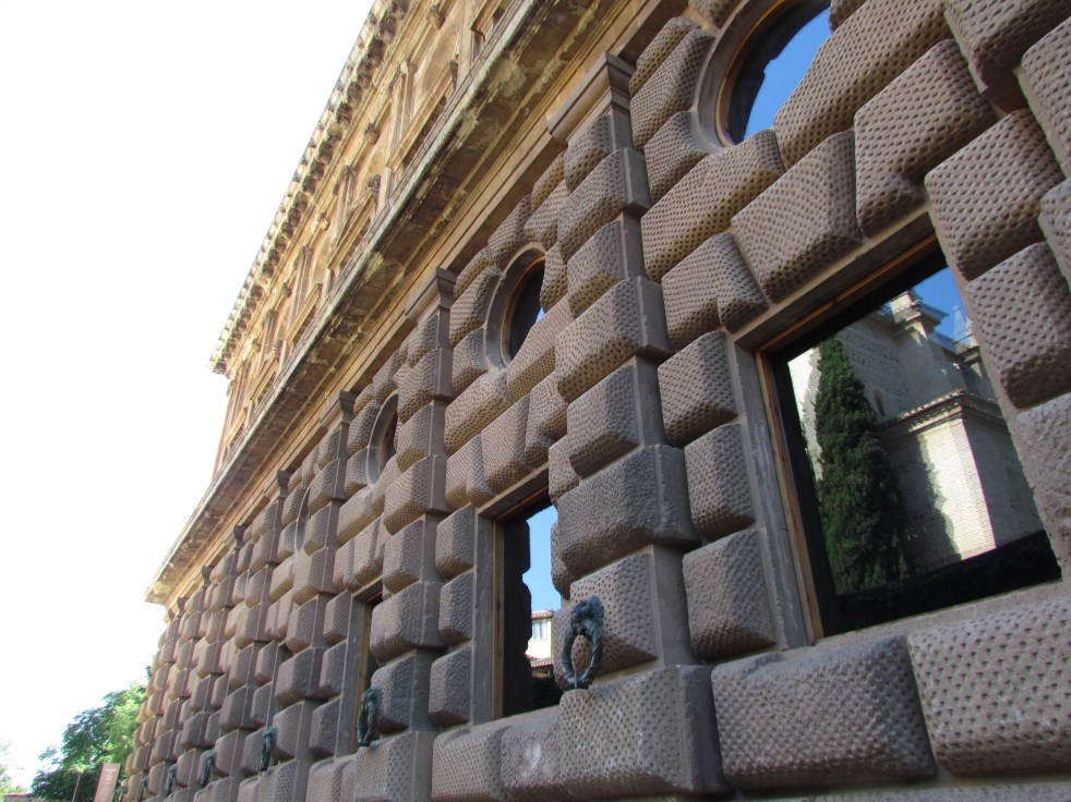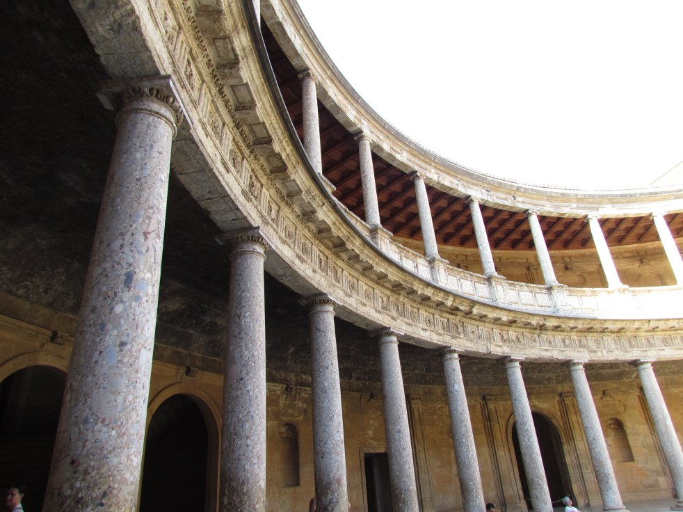 Seguimos para o Palácio de Carlos V, que foi erguido pelo Rei da Espanha, depois de uma visita ao complexo de Granada, em estilo romano com um grande pátio cercado de colunas. Ele destoa completamente do estilo dos outros palácios.