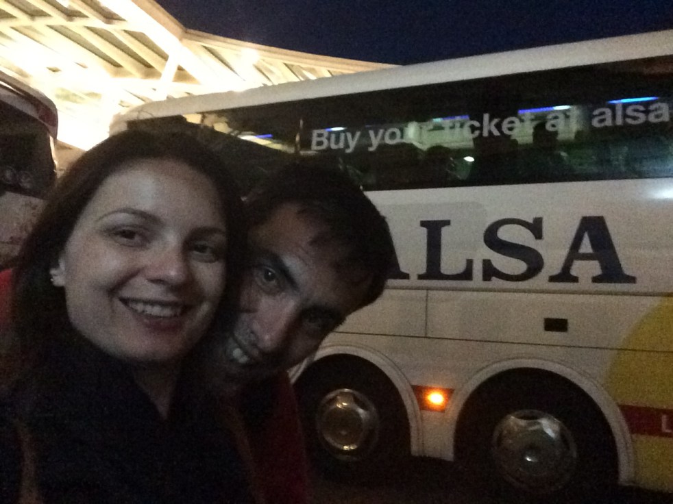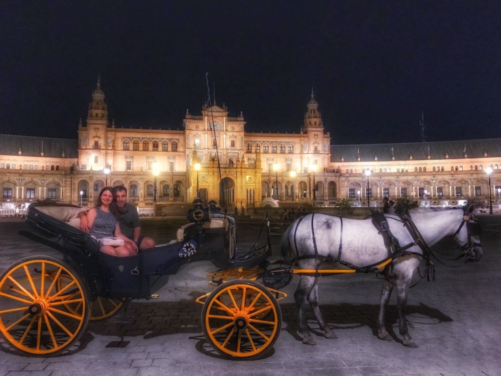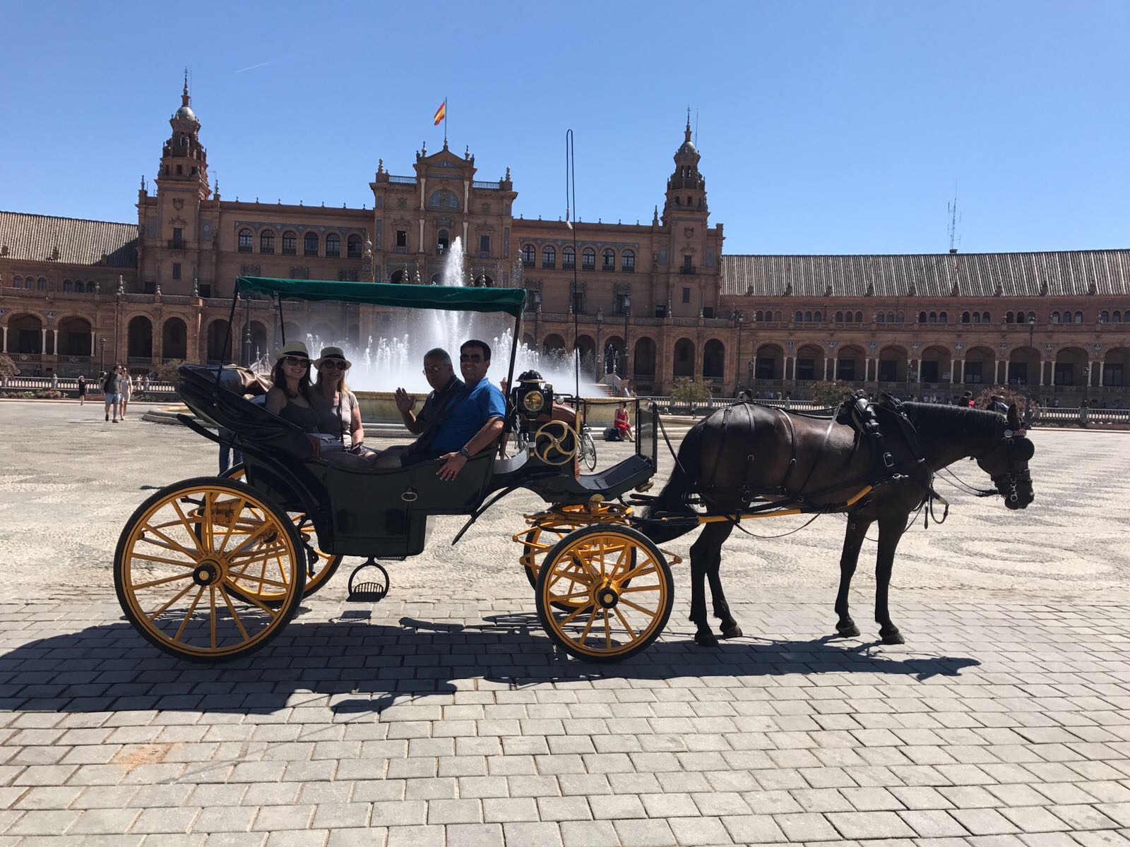 Chegamos em Sevilha a partir de Lisboa em um ônibus noturno da Alsa, a única forma que encontramos de atravessar a fronteira sem precisar pagar a taxa de devolução do carro em outro país. Não havia trem e nem avião que conectassem as duas cidades, entao ônibus é a melhor opçao. São 6 horas de viagem das 22:00 às 5:45, pois a Espanha está uma hora na frente de Portugal. A viagem é bem tranquila e há uma parada no caminho. Comprei online do Brasil e imprimi as passagens em casa na hora. (Já fiz essa viagem de Lisboa a Sevilha duas vezes, uma com meu marido e outra junto com meus pais e é bem tranquilo mesmo).