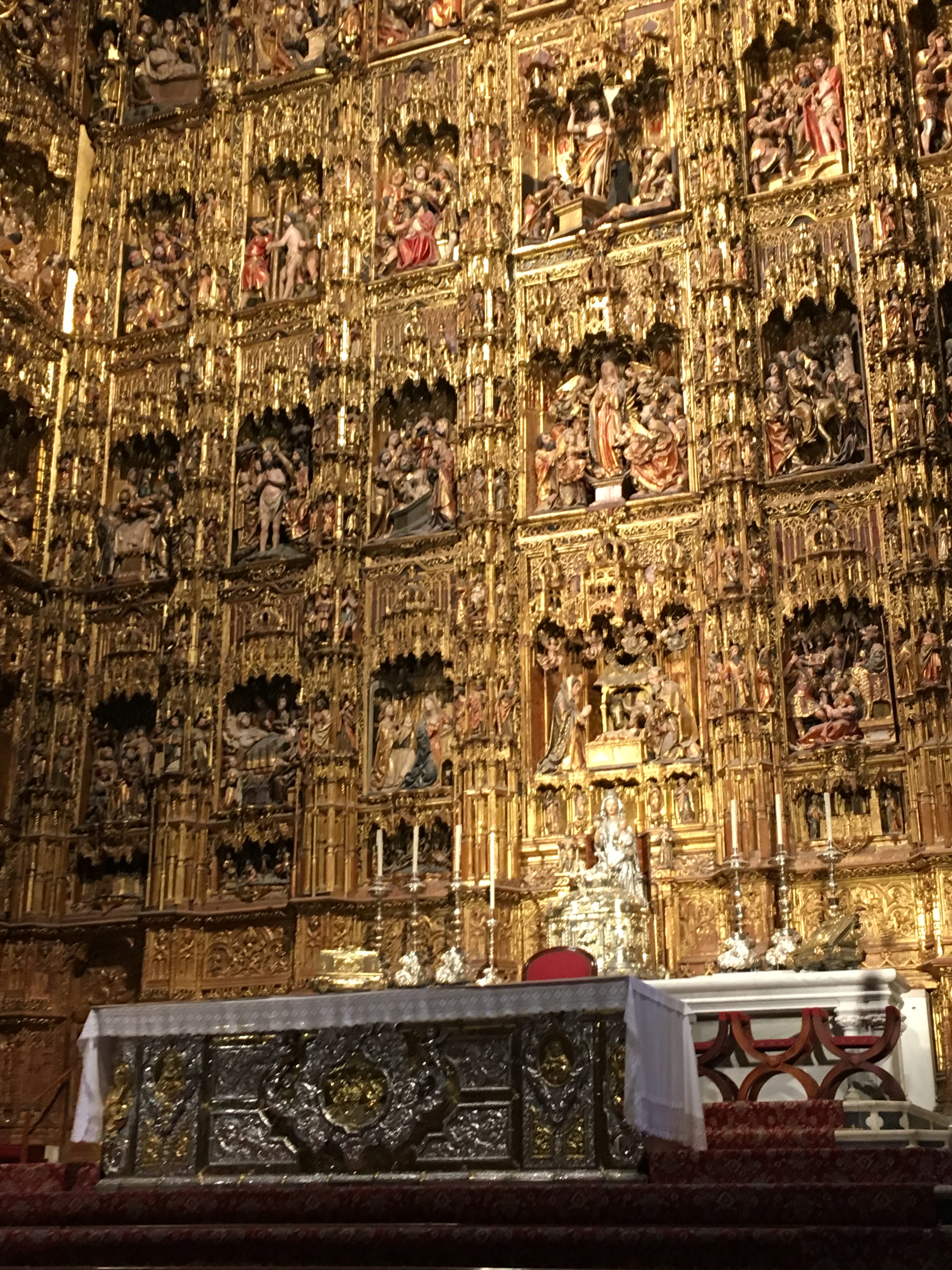 Começamos pela Catedral de Sevilha, que é uma das mais bonitas que já visitei, a maior da Espanha e a terceira maior do mundo!