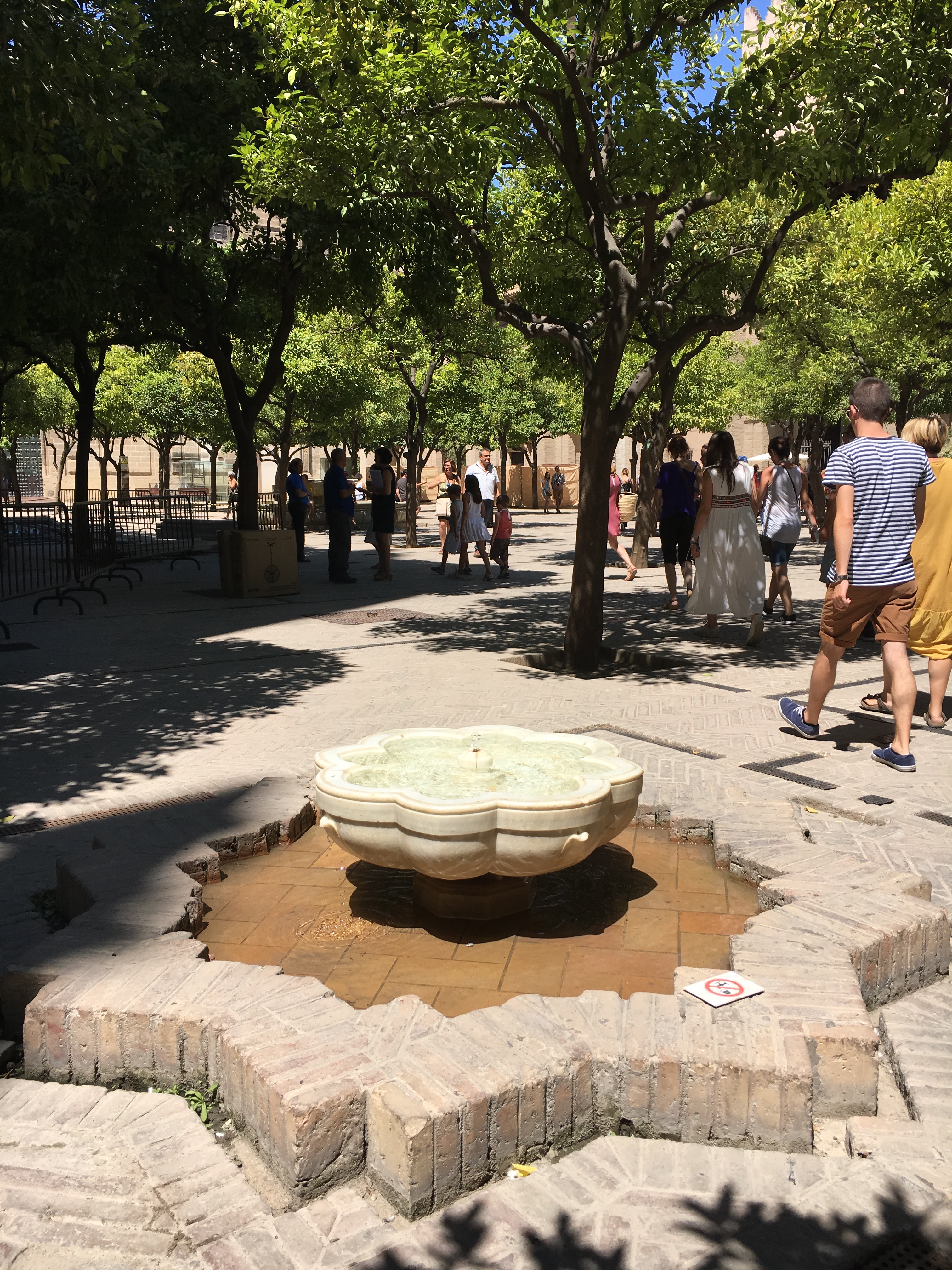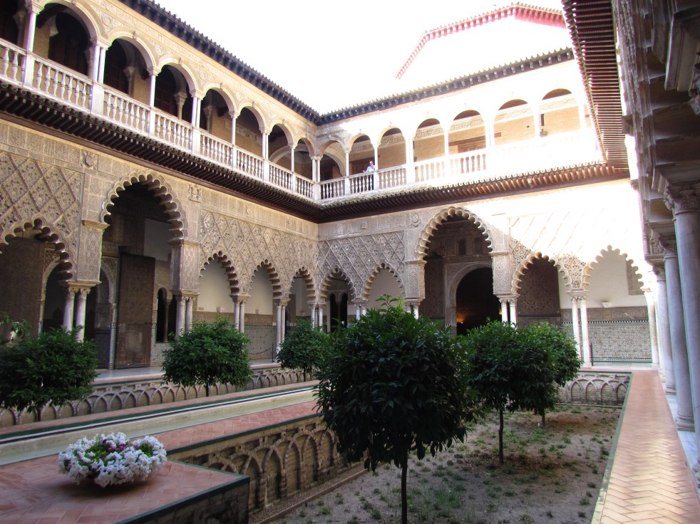 Assim que o hotel abriu deixamos as coisas e fomos conhecer a cidade. Ficamos na Pensión San Benito Abad, muito boa, mas sem café da manhã, limpa e bonita. Fazia questão que nosso hotel em Sevilha fosse tipicamente árabe e com boa localização, leia-se perto do Centro Histórico. Então achei esse Riad (casa típica árabe com pátio no meio) com excelente custo benefício (as casas árabes sao muito fresquinhas apesar do calor escaldante do lado de fora!) e na cara do gol das principais atrações. Fizemos tudo a pé.