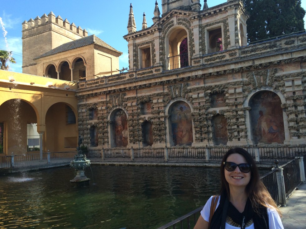 Em frente fica o Real Alcazá, um dos complexos palacianos mais visitados no mundo. Nós compramos os ingressos na hora, mas é possível comprar com antecedência online e agendar horário para a visita. A fila realmente é enorme, é que demos sorte de chegar bem cedo e entramos na hora.