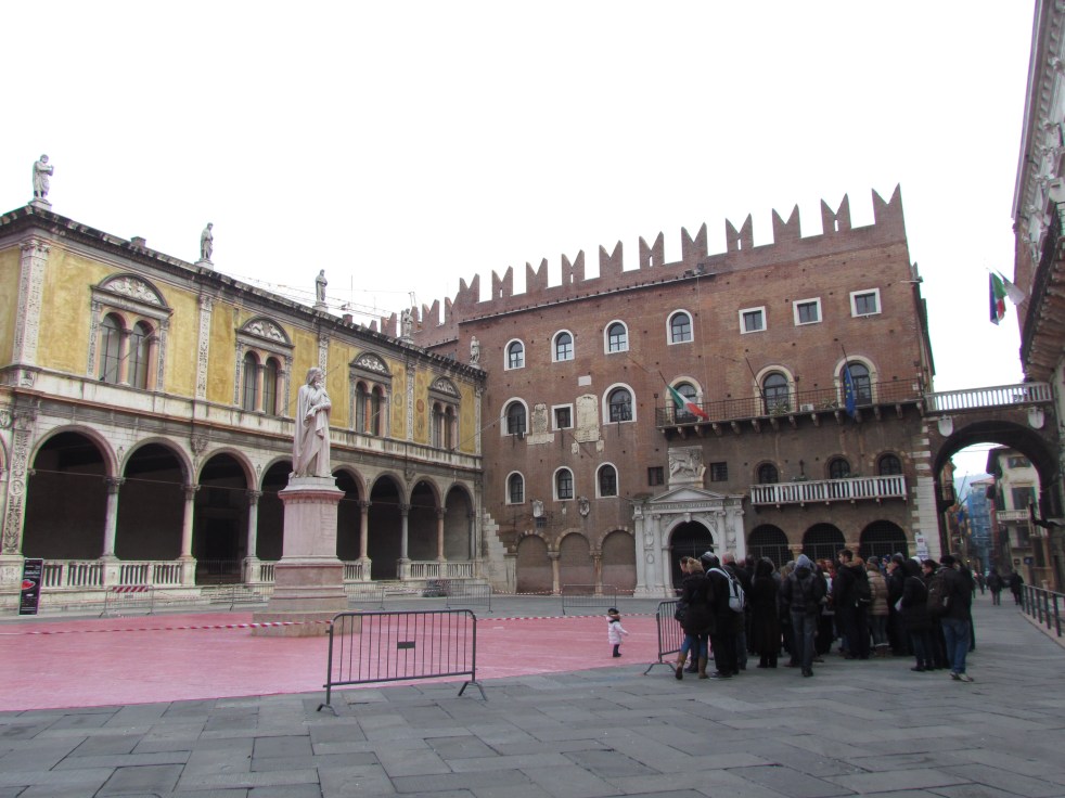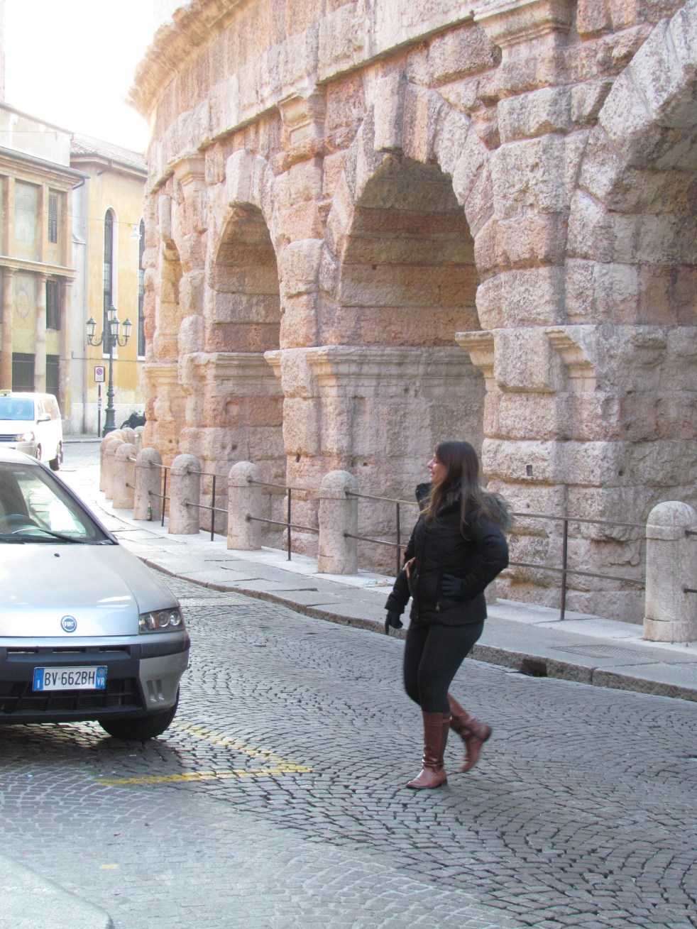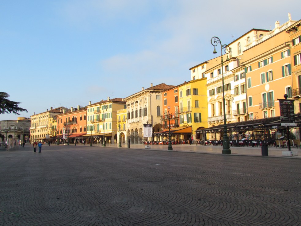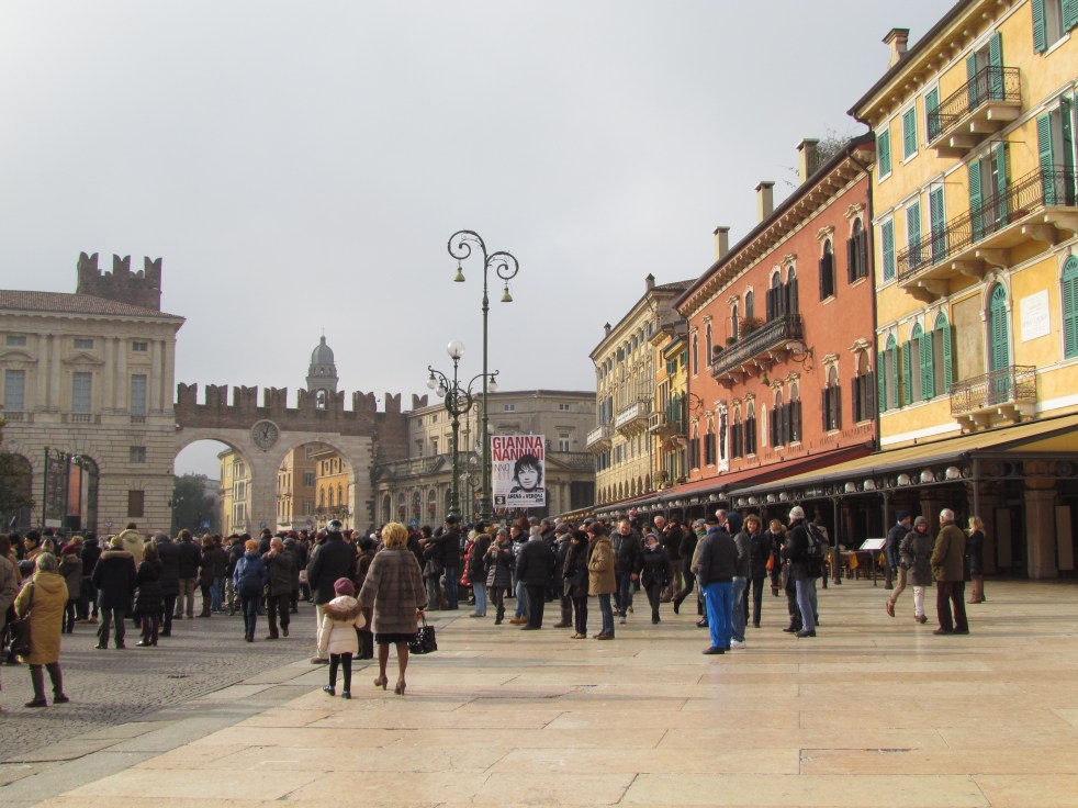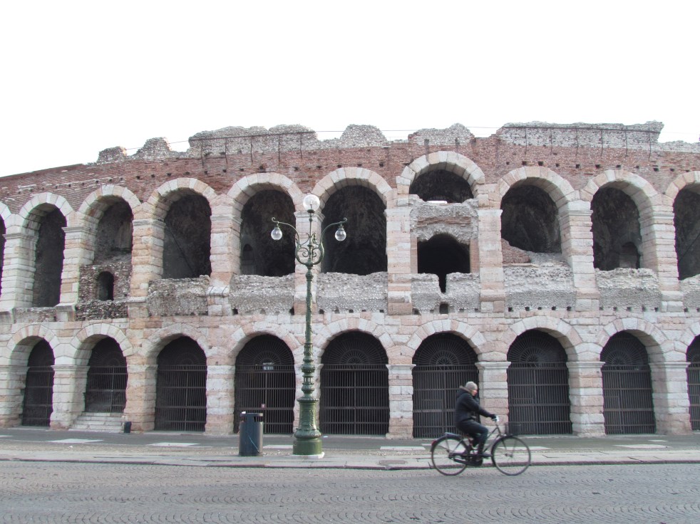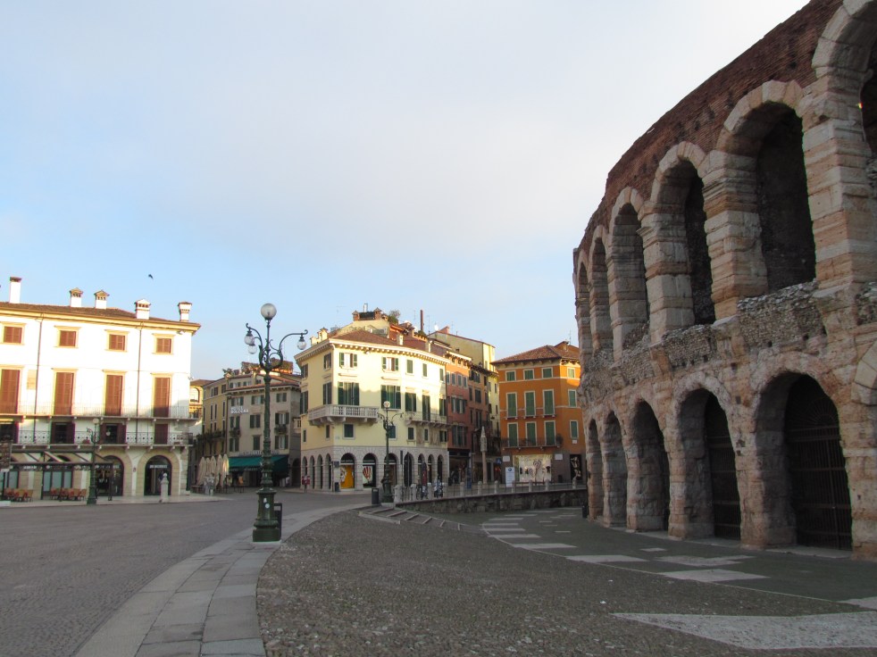 É o terceiro maior anfiteatro da Itália e tem capacidade para 25 mil pessoas. Além disso logo atrás estão várias casas coloridas em tonalidades que se alternam entre o ocre, o laranja e o amarelo e que datam do século XIX. É uma delícia passar um tempo ali, o clima da praça é muito gostoso e apesar dos -3ºC não queríamos sair dali.