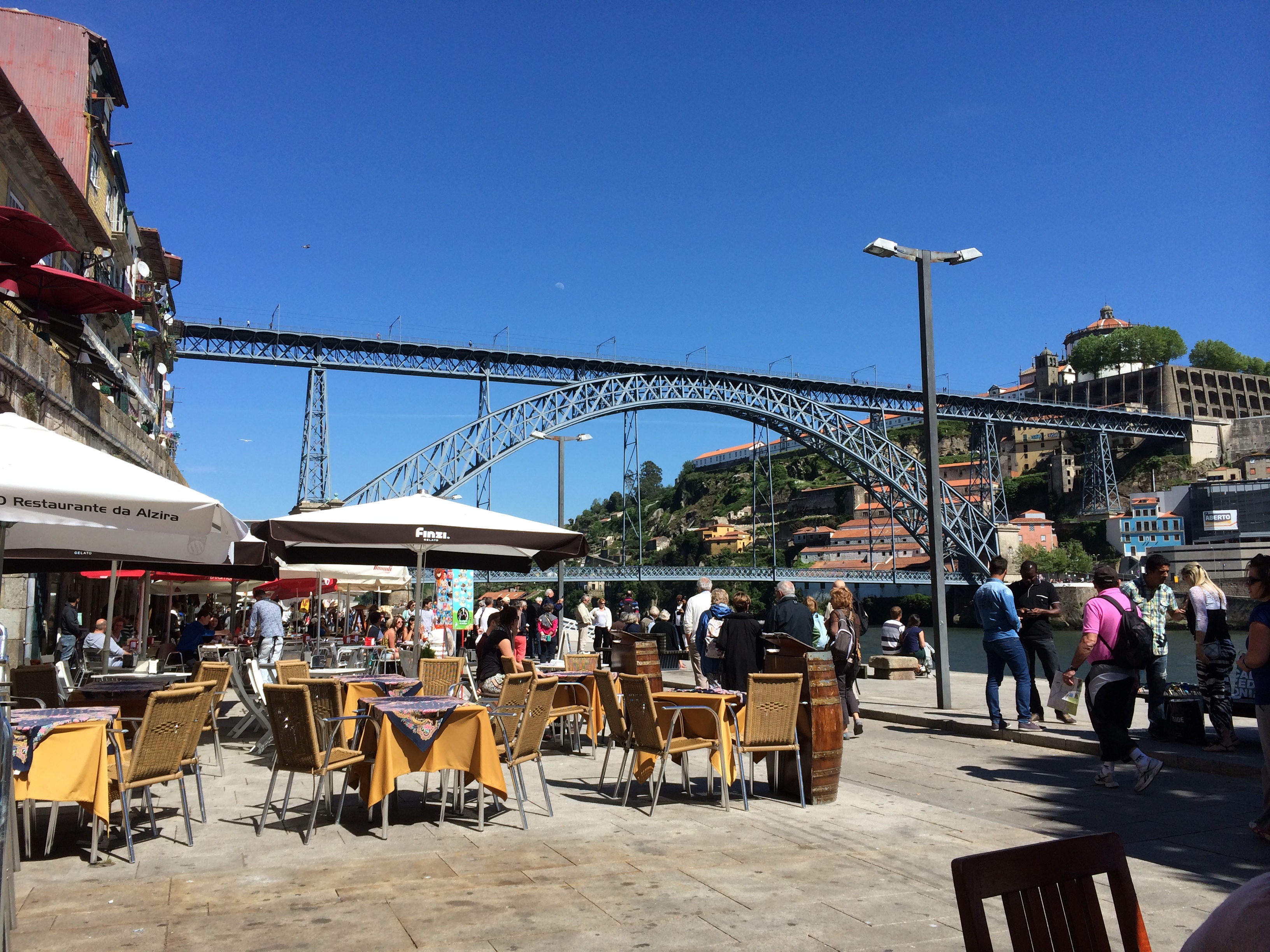 Na saída, cruzamos a ponte de volta ao Porto, propriamente dito, e escolhemos um dos restaurantes da Ribeira. Comemos um dos melhores bolinhos de bacalhau, regado a muito azeite português (extra virgem com acidez de no mínimo 0,5 – nunca mais quero outro) e vinho do Porto lágrima, meu favorito!