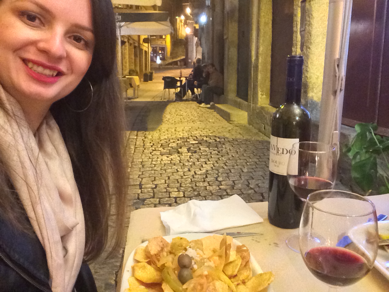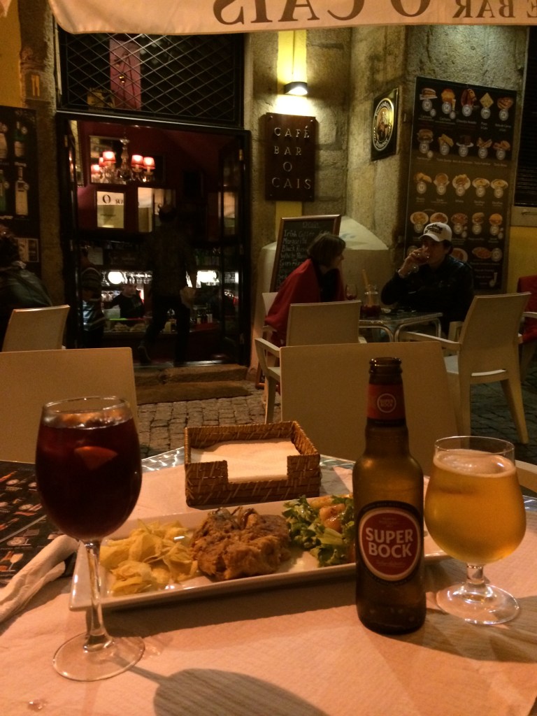 Na volta fomos caminhando pelas estreitas ruazinhas e paramos em um barzinho super gostoso (tinha até cobertor!) e ficamos o resto da noite tomando sangria, comendo uma legítima alheira portuguesa e ‘people watching’!