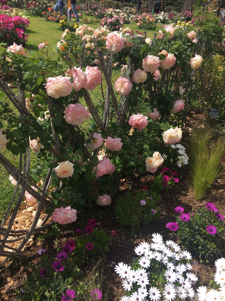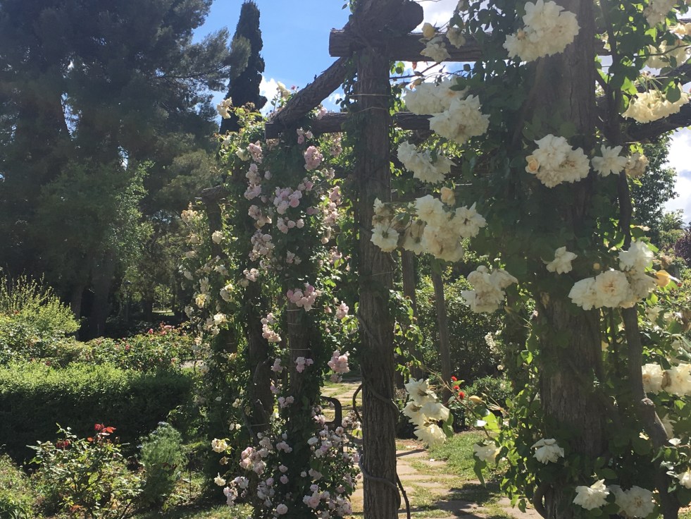 Além das rosas em si, existem arbustos e pérgolas que deixam o lugar ainda mais bonito.