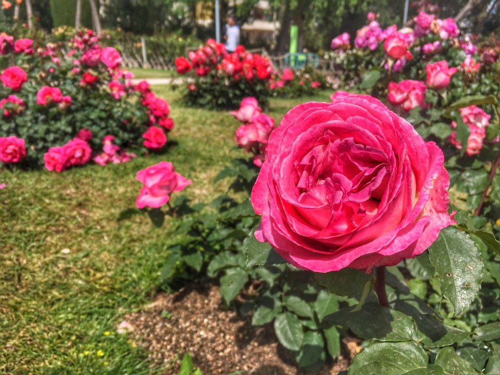 O parque conta com mais de 4 hectares e abriga mais de 245 variedades de rosas com um conjunto de 11.000 roseirais.