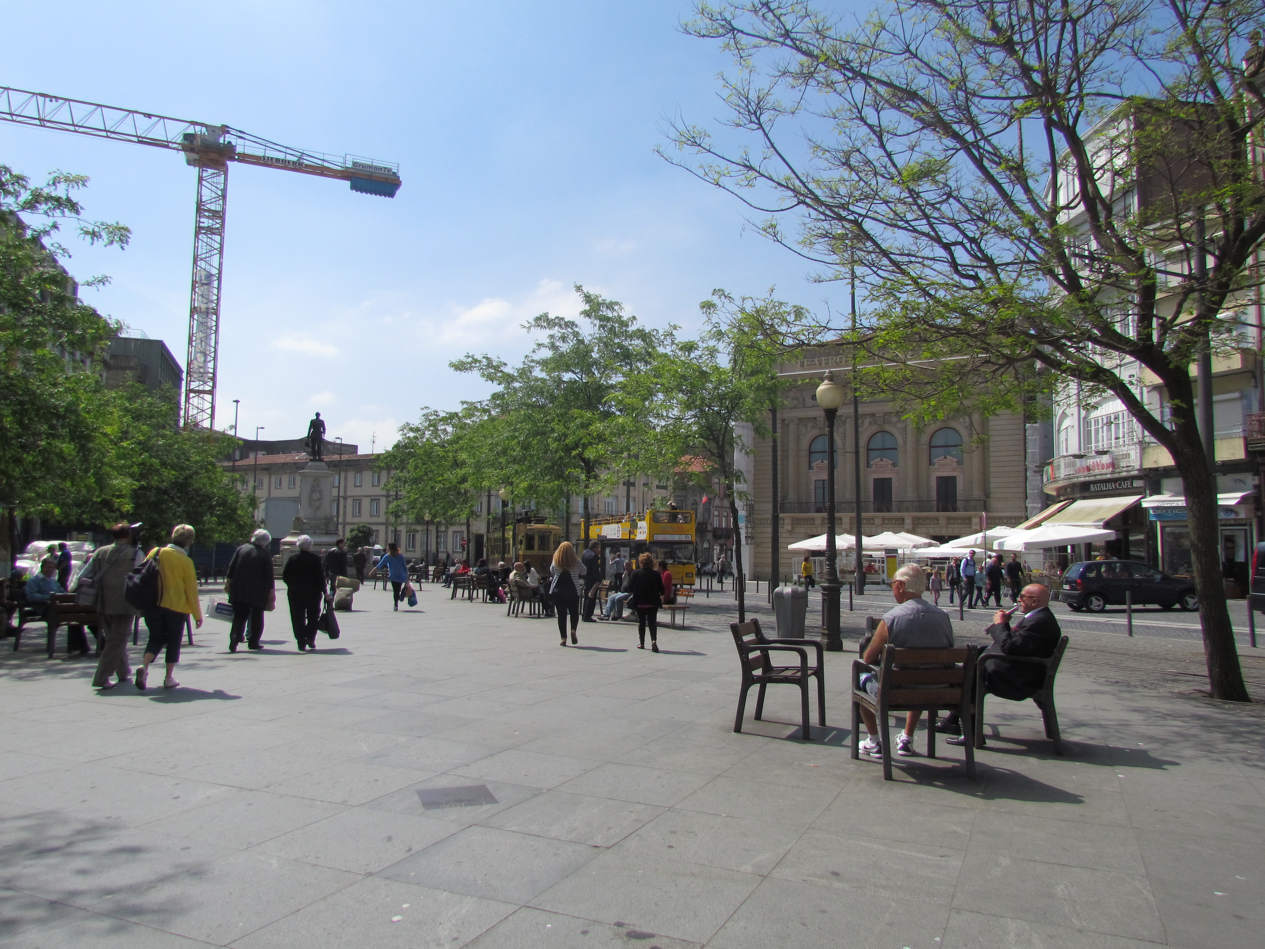 Em frente à praça há um palacete real, que virou hospital durante a guerra e foi recentemente vendido à rede de hotéis Dona Inês que vai montar ali um hotel de charme. Também em frente estão o Teatro Nacional São João e o Cine-Batalha. Dois prédios históricos do século XIX.
