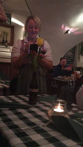Na segunda noite, depois de um dia cheio de trabalho, jantei com a equipe em um restaurante típico bávaro, bem no centrinho histórico da cidade, que é um charme. Recomendo bastante também, o Schwanzer Rutschn.