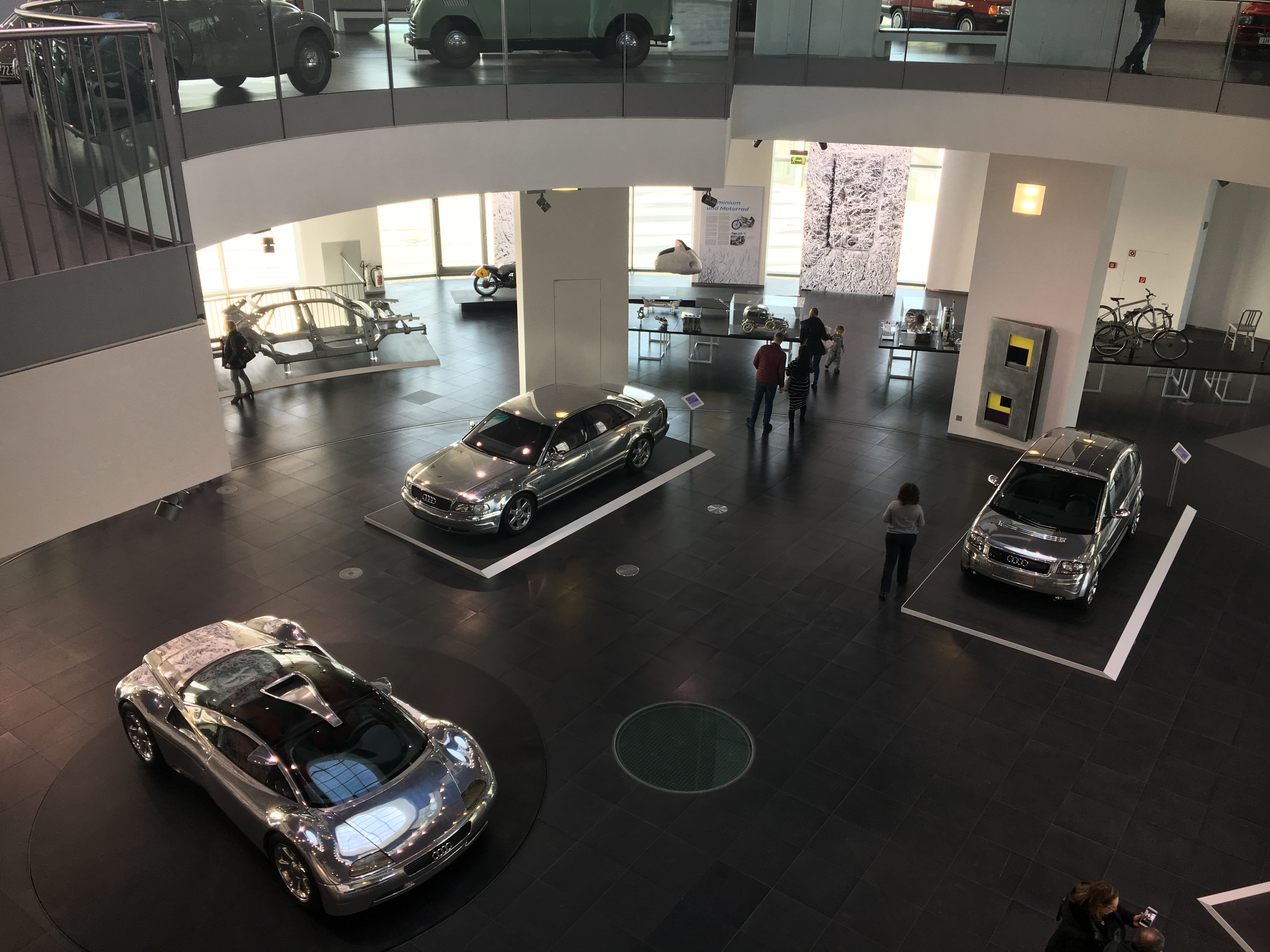 Na mesma área fica o Museu da Audi onde estão todos os carros clássicos da marca. A entrada simples custa 2€ e a visita guiada de 1 hora 6€. Eu optei pela visita guiada porque queria conhecer um pouco da história da fábrica.
