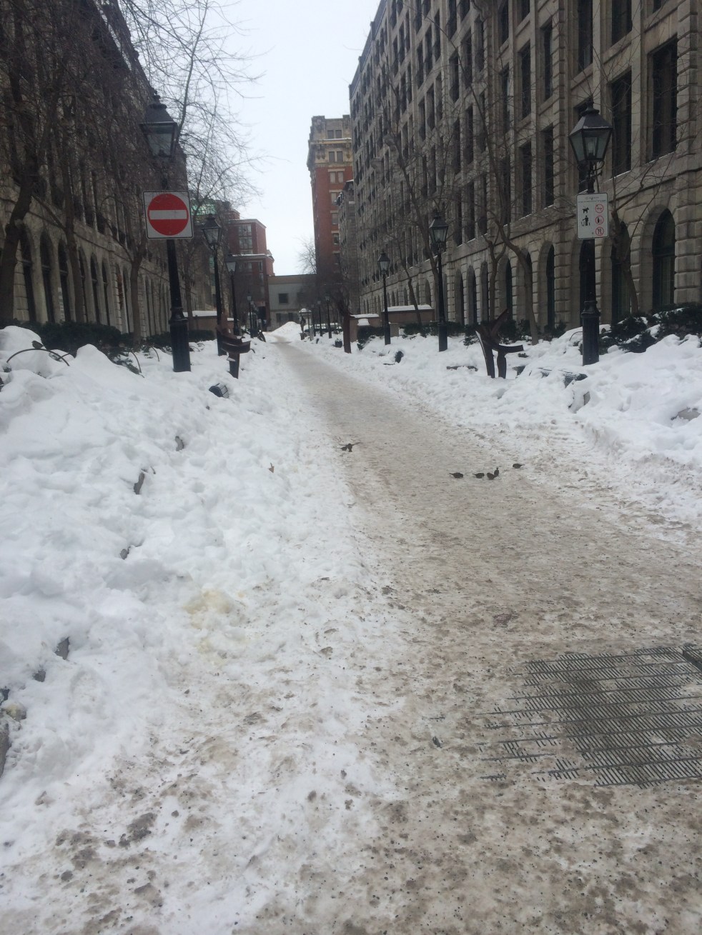 Mas a experiência foi incrível, de saber como as pessoas convivem com esse clima, as crianças todas encapotadas parecendo que nem sentiam nada, o pessoal tirando quilos de neve da calçada, as ruas escorregadias, as botas Sorel detonadas de barro, os diversos e inimagináveis tipos de casacos, luvas e gorros para extremo frio… muito enriquecedor.
