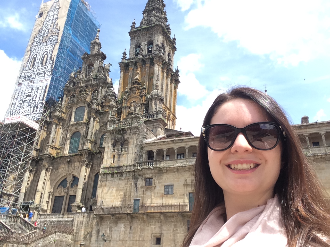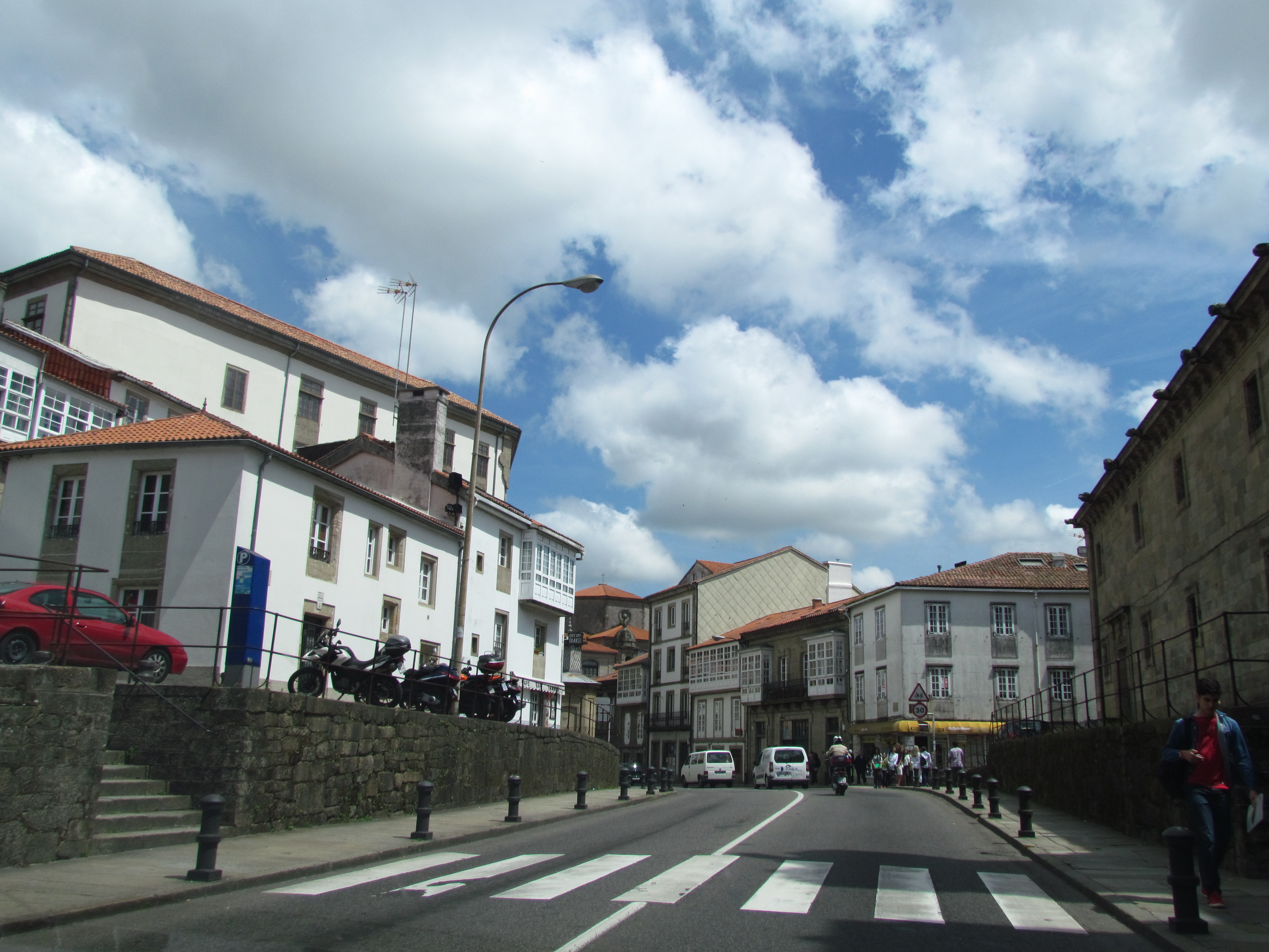 Outra dificuldade é estacionar o carro porque a cidade é lotada. Mas tudo é compensado pelo visual da estrada que é bem bonito e pelo charme e energia da cidade. Logo na entrada você já começa a ver os peregrinos chegando e é só seguí-los para chegar à Catedral que é enorme e linda.