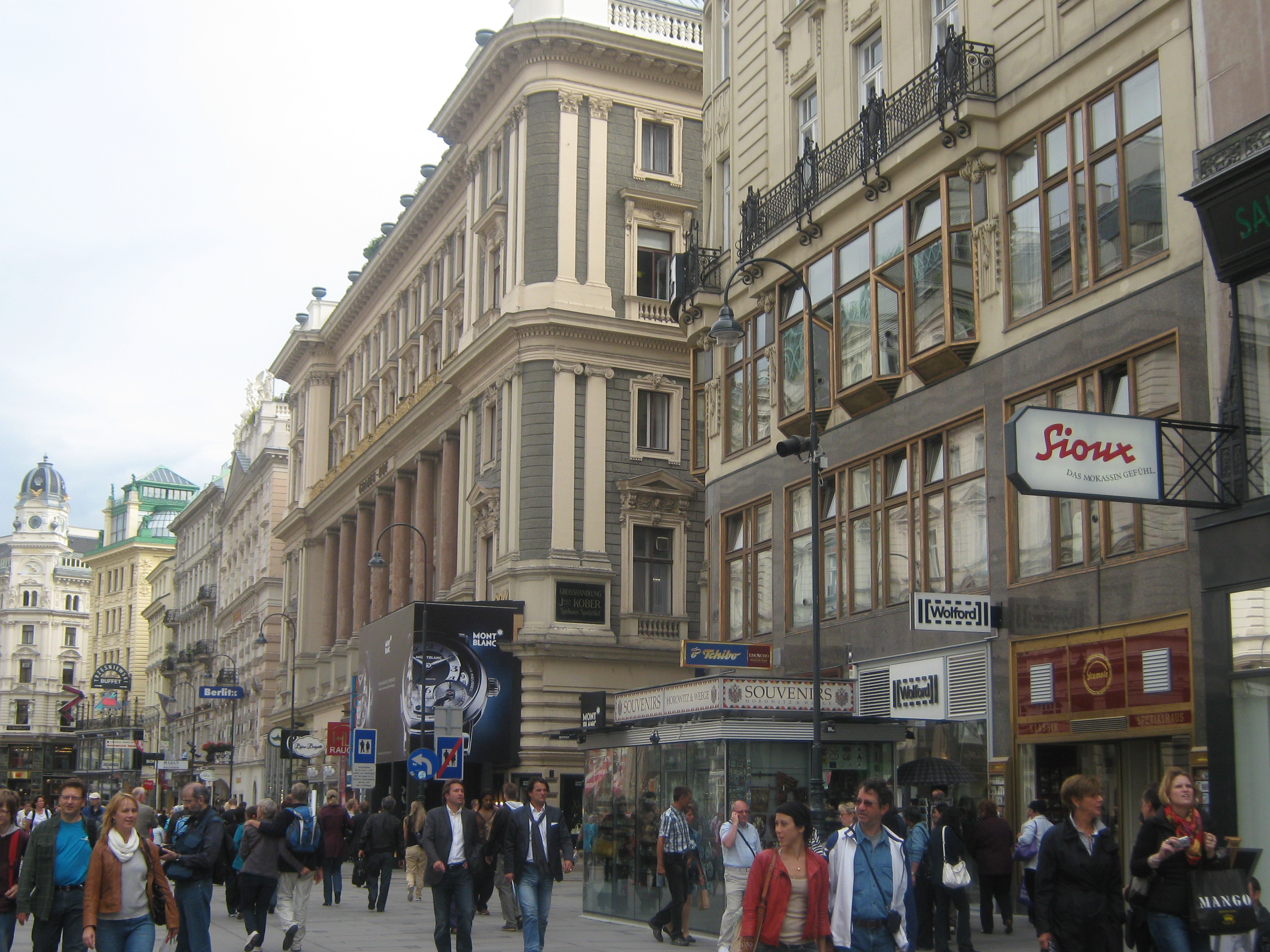 A rua de pedestres mais importante é a Graben, mas também vale percorrer as vizinhas Kärntner e Kolmarkt, e se perder por ali passeando entre os cafés e confeitarias com suas mesinhas na rua. Os confeiteiros de Viena tem fama internacional e as frutas de mazipã são obras de arte deliciosas. Na Dorotheergasse está a famosa sanduicheria Trzesniewski, que merece um post a parte.