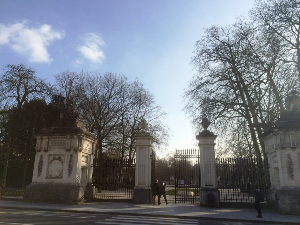 Voltando à rue Royale passeamos pelo Parc de Bruxelles (ou Warandpark) que é o maior da cidade e é rodeado pelo Palácio Real, o Parlamento Belga e a Embaixada dos EUA. O parque é cercado por uma fileira dupla de limoeiros e uma cerca monumental!