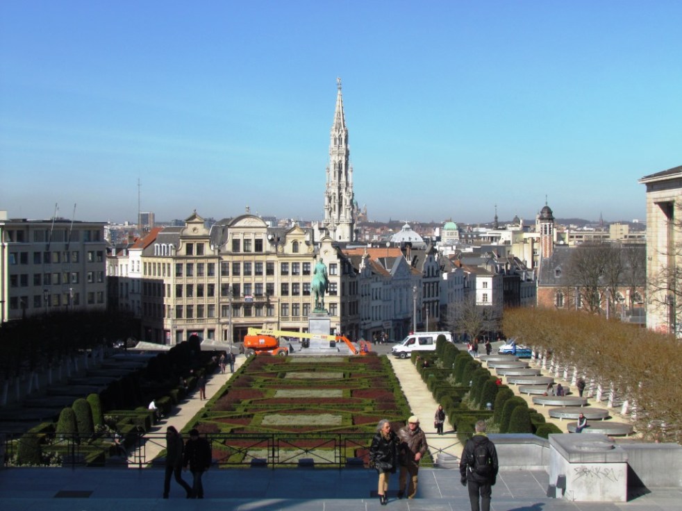 Seguimos em direção ao Mont des Arts, que é o quarteirão das artes, onde fica o Museu de Belas Artes, o Museu do Filme, Museu dos Instrumentos Musicais, a Livraria Real entre outros e de onde se tem uma linda vista da cidade e da Gran Place.
