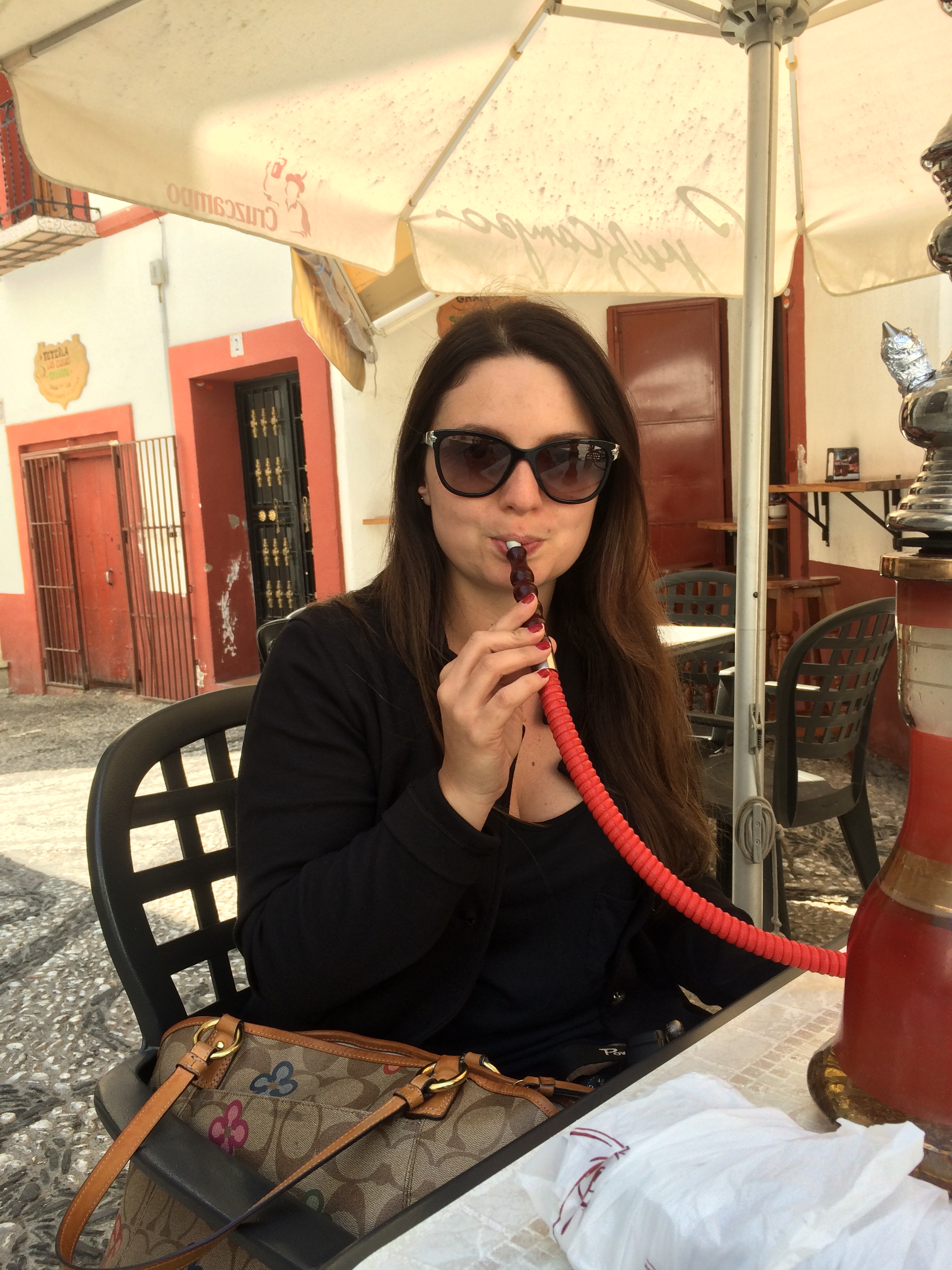 Há várias, escolha a que mais gostar e desfrute, pesquisei uma seleçao no Google aqui. Escolhemos a Tetería Alibaba para a hora do almoço poque ficava em uma pracinha, a Plazeta San Gonzalo, na porta da Igreja de mesmo nome, em um lugar bem tranquilo e protegido dos turistas.