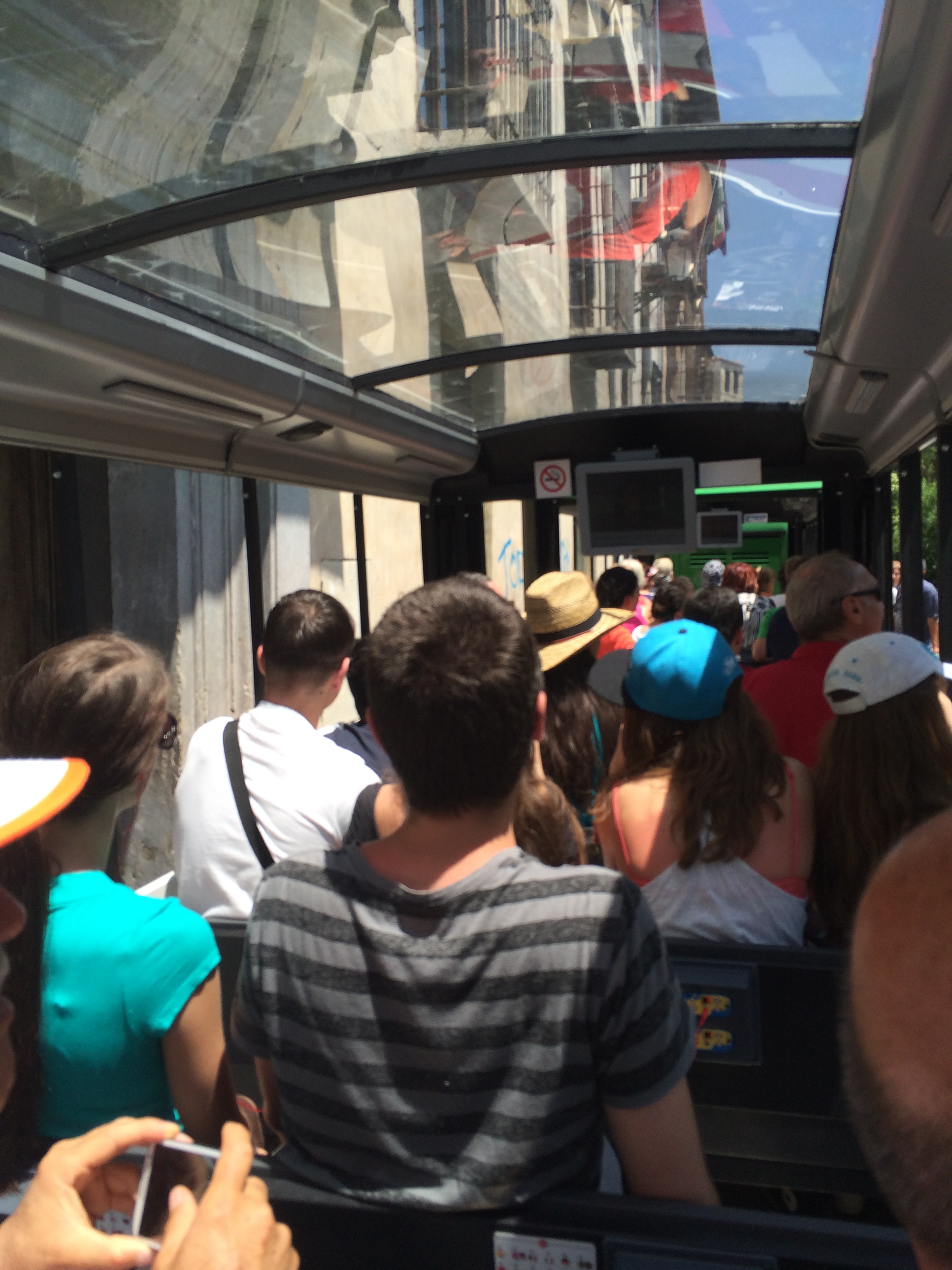 Nos perdemos pelas ruazinhas até a Plaza Nuova que é a principal da cidade. Lá pegamos o ônibus de turismo (que custa 8 Euros!) para irmos para os lugares mais distantes como o Mirante de San Nicolau.