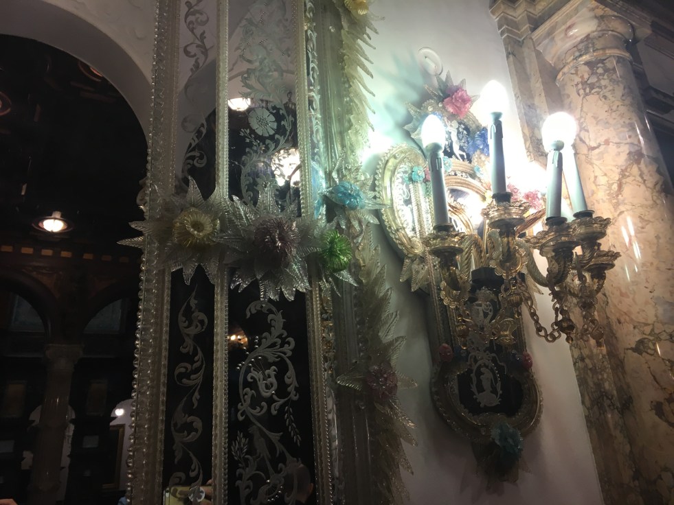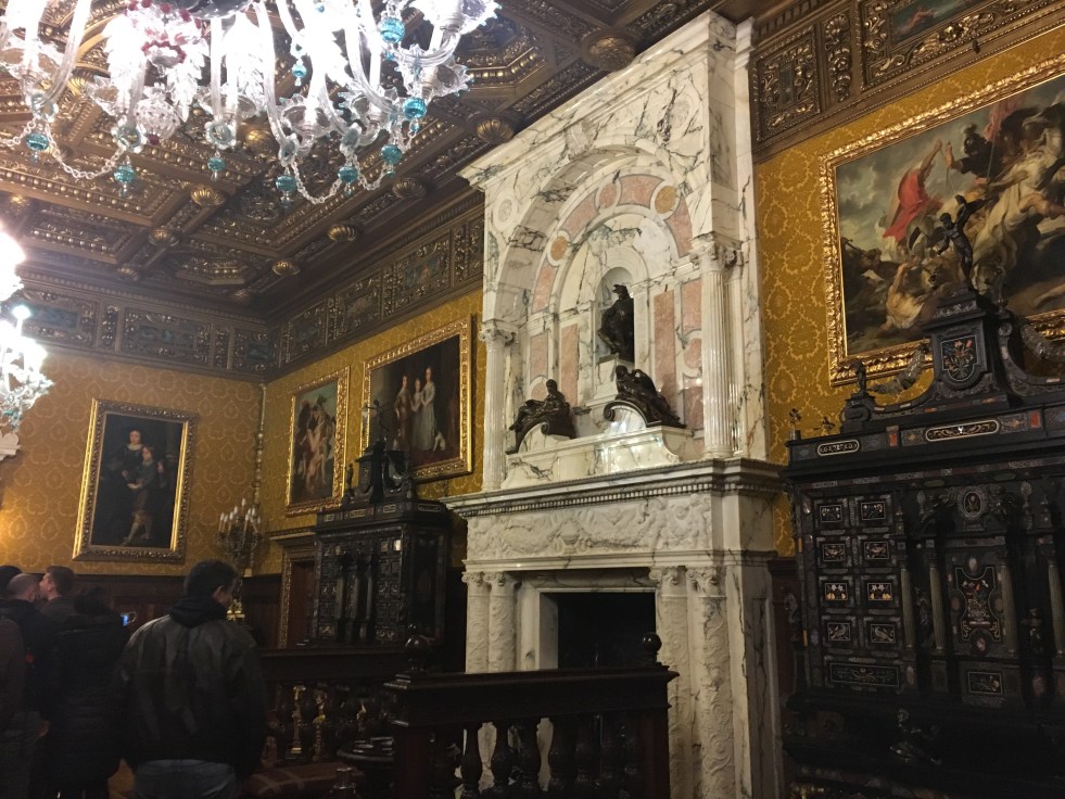 As salas que mais gostei foram a Sala de Armas, A Biblioteca com passagens secretas e o Salão real com seus lindos lustres de murano.
