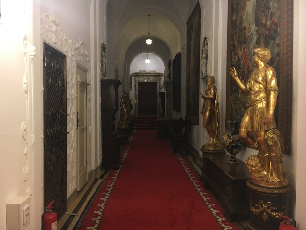 O palácio tinha também seu próprio teatro com as primeiras pinturas de Gustav Klint, um famoso pintor austríaco.