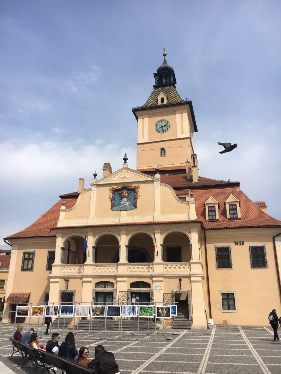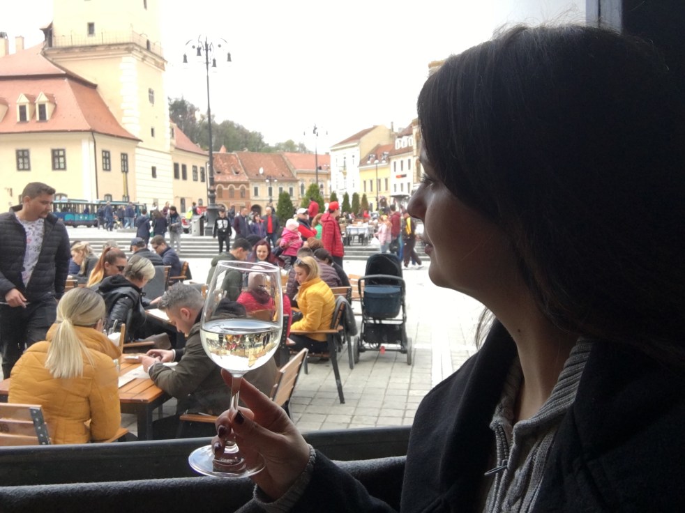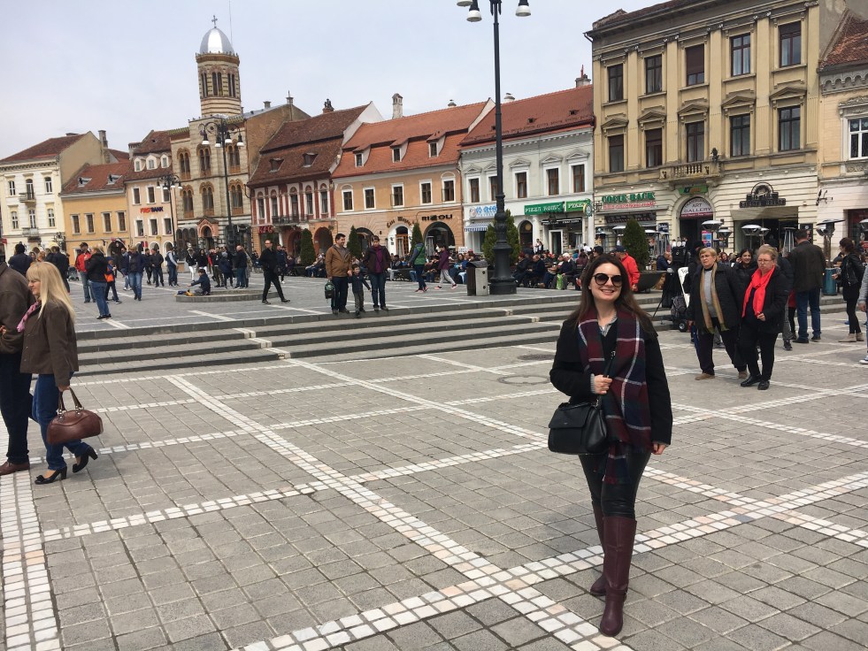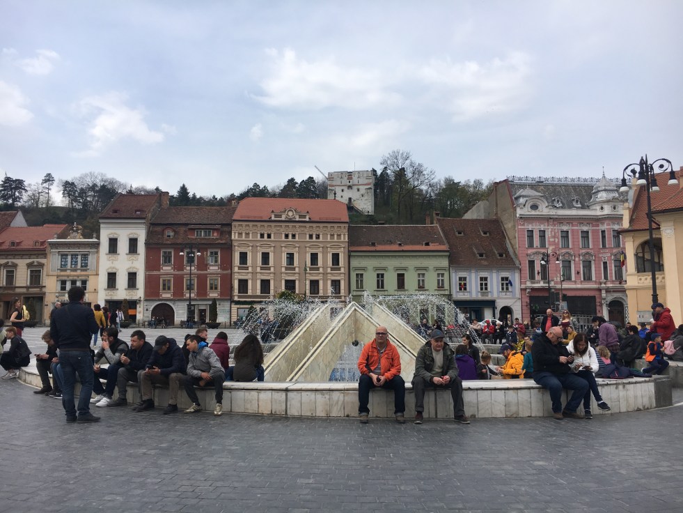 Nossa próxima parada foi na super fofa cidade de Brasov, tipicamente medieval, com muitos edifícios históricos conservados, uma muralha e ruazinhas estreitas. Descemos na Praça do Conselho, a principal da cidade e tivemos 1,5 horas livre para almoçar.