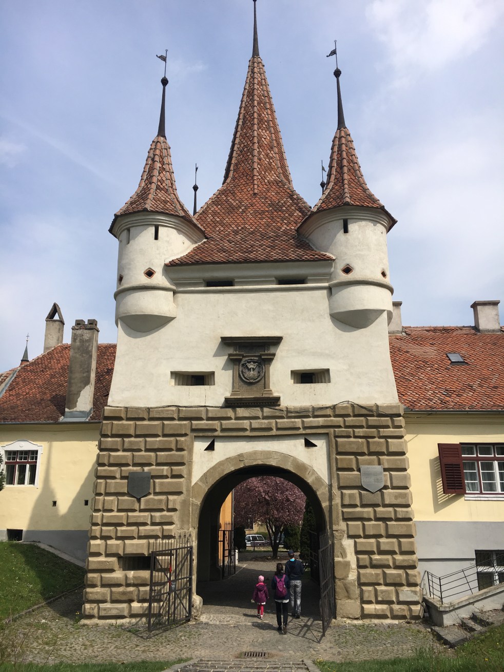 Satisfeitos saimos para dar uma voltinha pela cidade. Começamos pela Torre do Conselho e seu símbolo de uma coroa com raízes. Sobre esse símbolo há uma lenda que explica o nome alemão da cidade, chamada de cidade da coroa. Reza a lenda que o rei Salomão havia sido amaldiçoado por sua mãe, depois de matar seu irmão, e para fugir da maldição fugiu a cavalo. Em uma curva seu cavalo caiu pelo precipício e ele se agarrou nas raízes de uma árvore e aí ficou sua coroa antes de sua queda.