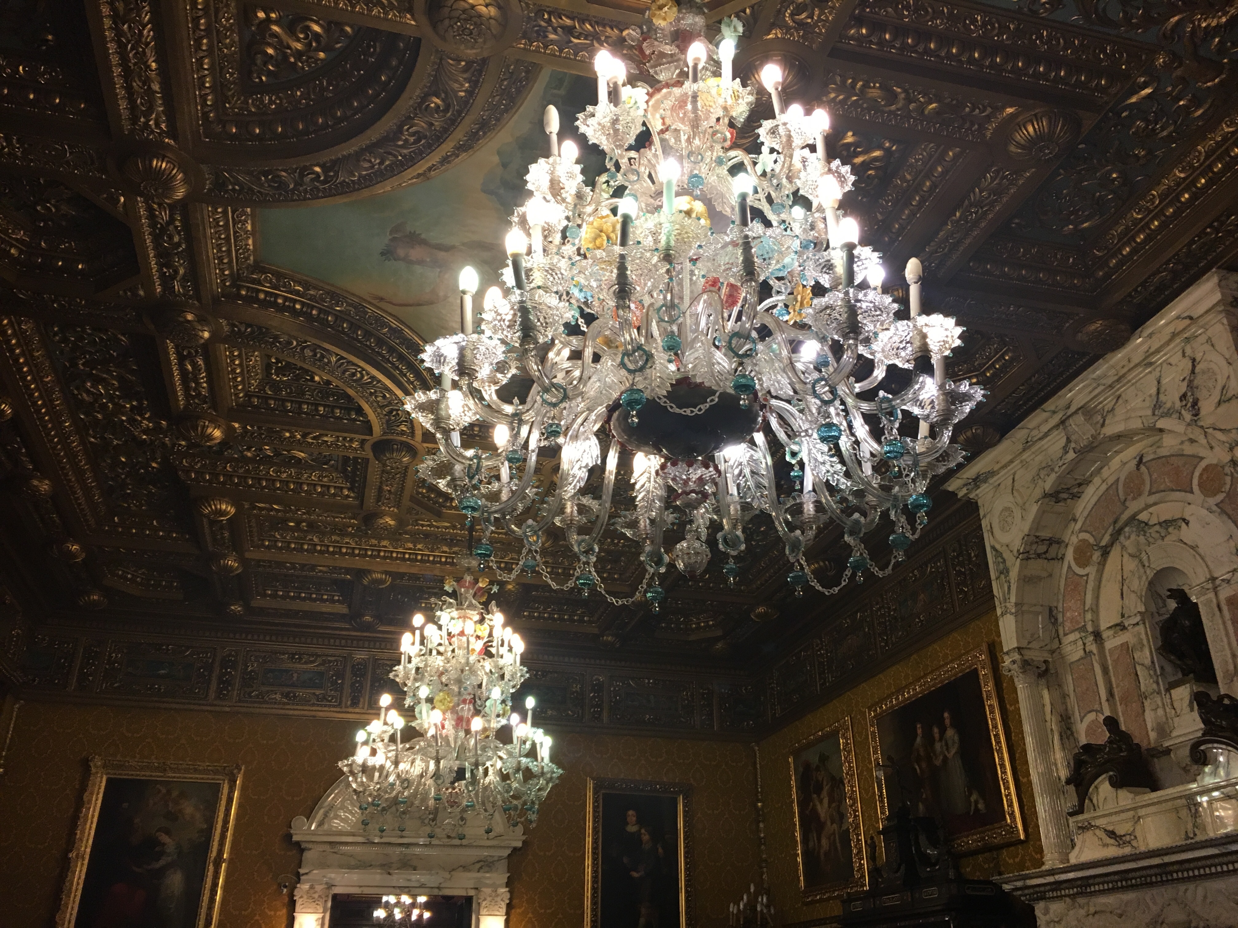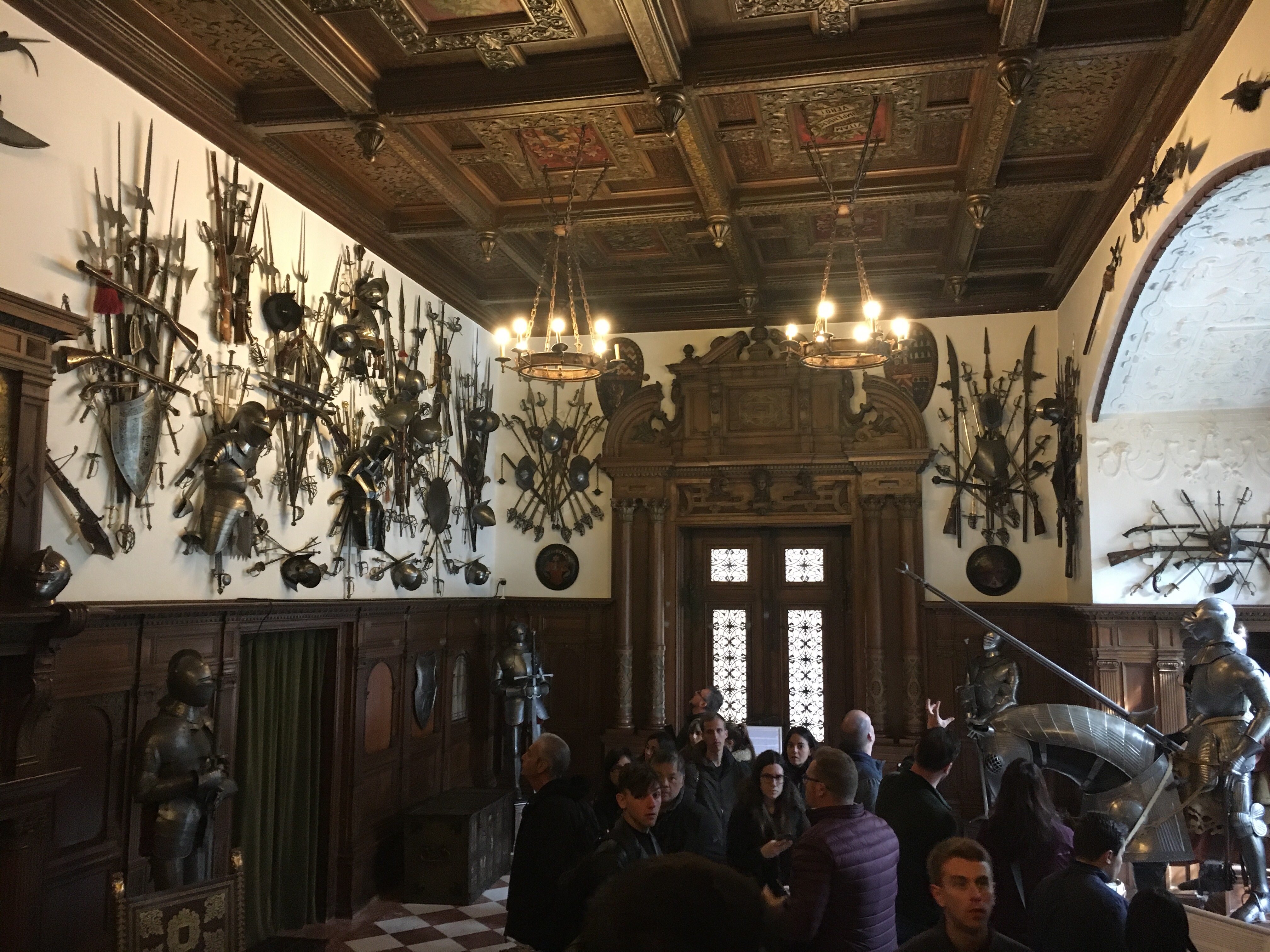 As salas que mais gostei foram a Sala de Armas, A Biblioteca com passagens secretas e o Salão real com seus lindos lustres de murano.