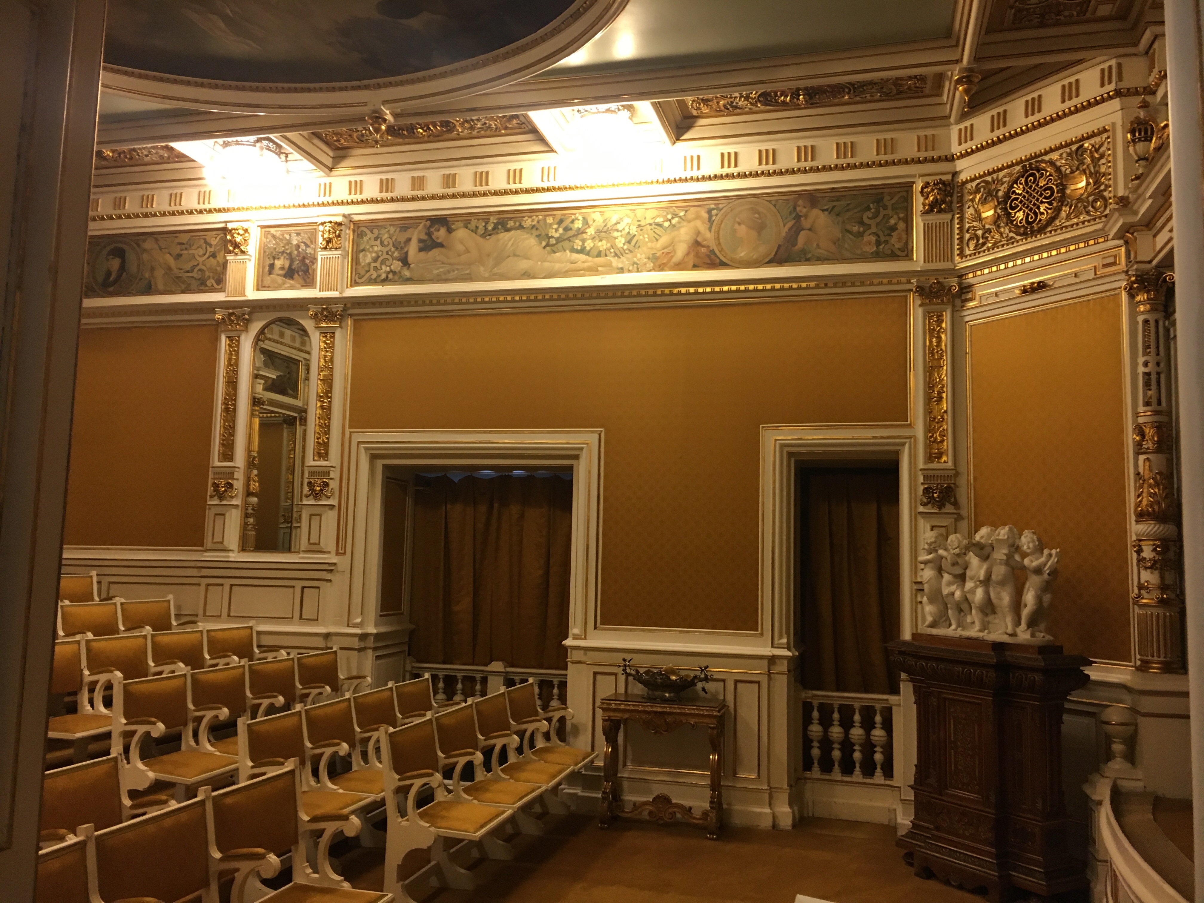 O palácio tinha também seu próprio teatro com as primeiras pinturas de Gustav Klint, um famoso pintor austríaco.
