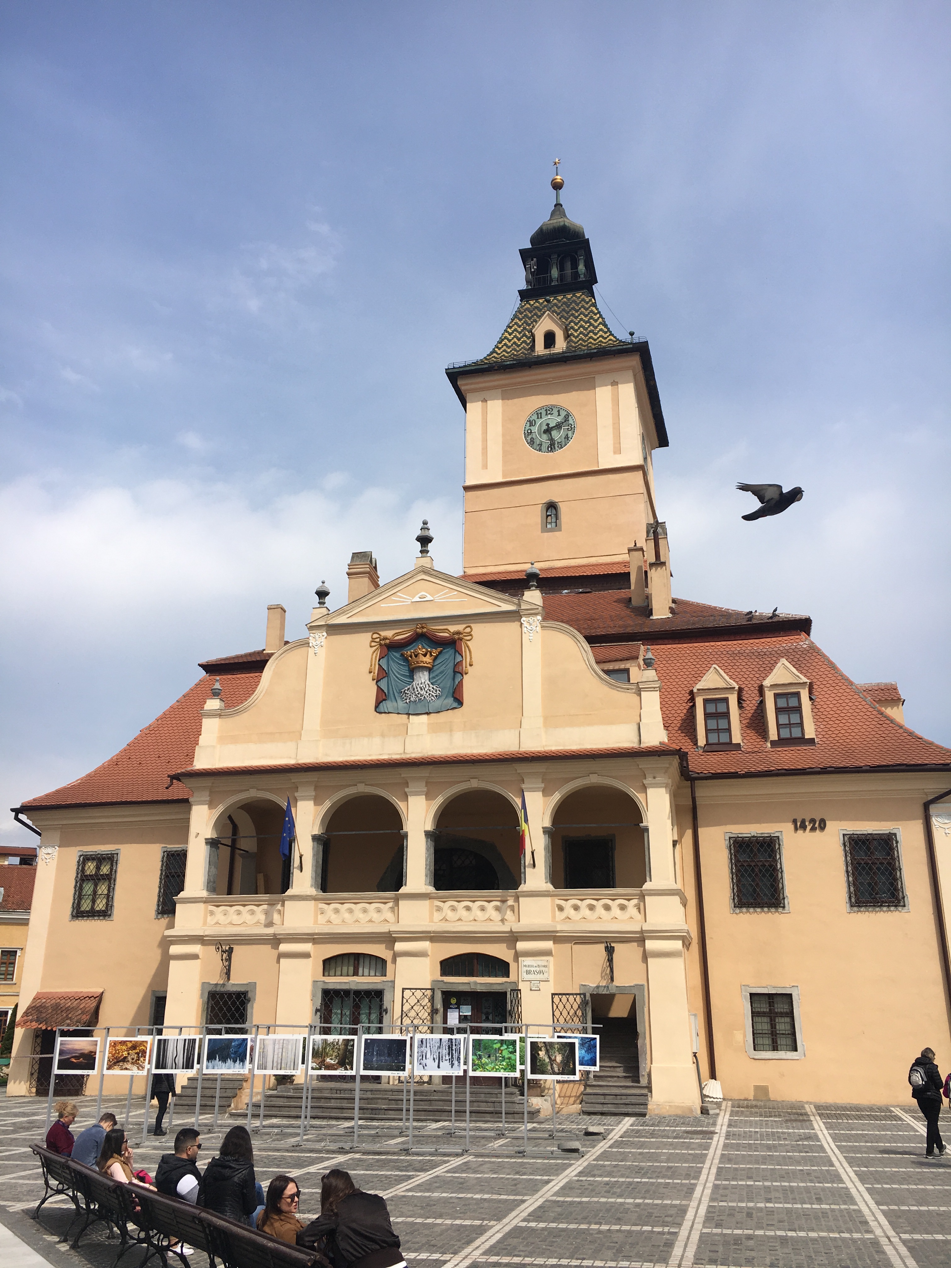 Nossa próxima parada foi na super fofa cidade de Brasov, tipicamente medieval, com muitos edifícios históricos conservados, uma muralha e ruazinhas estreitas. Descemos na Praça do Conselho, a principal da cidade e tivemos 1,5 horas livre para almoçar.