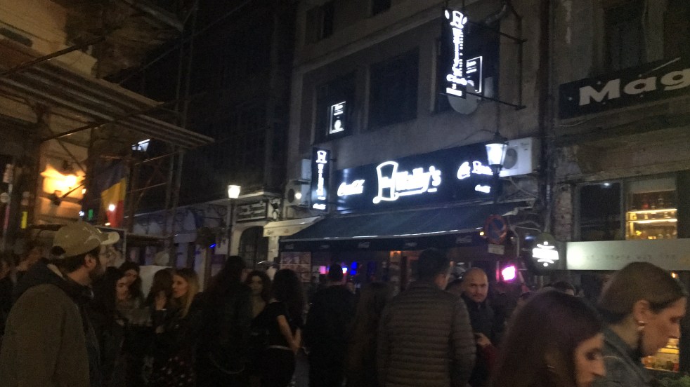 Depois do jantar demos uma volta pelo centro histórico para conhecer um pouco da famosa noite de Bucarest e o negócio é punk.