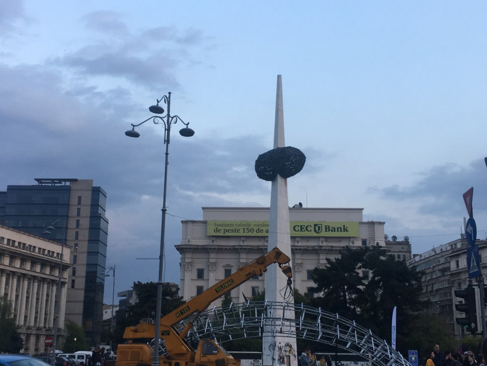 Seguimos para a Piata Revolutiei ou Praça da Revolução onde fica o Memorial do Renascimento, um imenso obelisco, que representa os mortos durante a repressão da ditadura com o nome de cada um deles gravados na pedra.