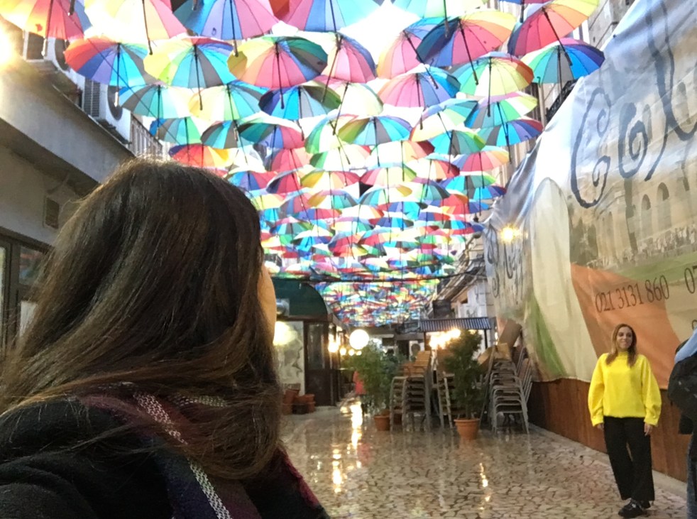 Ao sair, viramos à direita na Passajul Macca Vilacrosse que é um famosa rua em formato de garfo de churrasco, porque no meio tem um hotel que não quis vender o terreno, coberta com telhas amarelas e que se transformou em uma pequena galeria, uma das mais requisitadas para tomar um café e fumar narguilê, afinal a influência turca é forte.