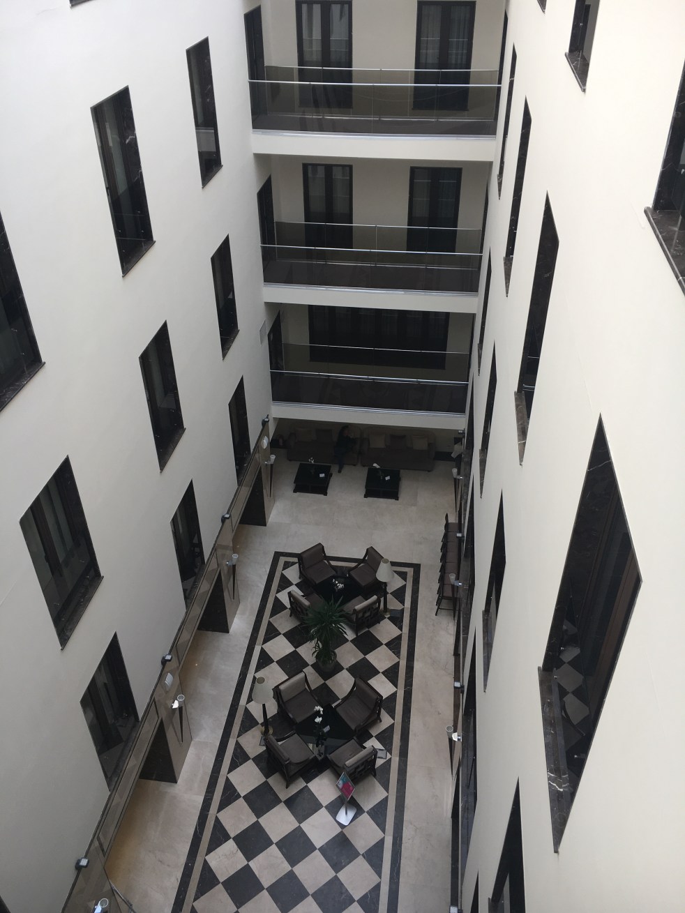 Os quartos são grande e reformados, tem ATM na porta, e desemboca bem na rua mais antiga da cidade, a Strada Franceza, onde estão as ruínas da primeira corte real de Bucareste no século XV, a Curtea Veche, de quando o príncipe Vlad Tepes, vulgo Drácula, fortificou a cidade antiga e a declarou residência real.
