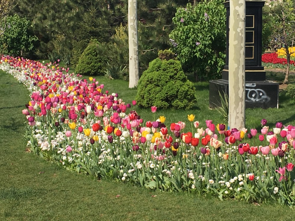 Ela foi contruída durante a época comunista, já mencionei a megalomania do ditador, e abriga um jardim de tulipas (fomos na primavera) e uma fonte monumental dentro de um grande lago, um dos cartões postais mais bonitos da cidade!