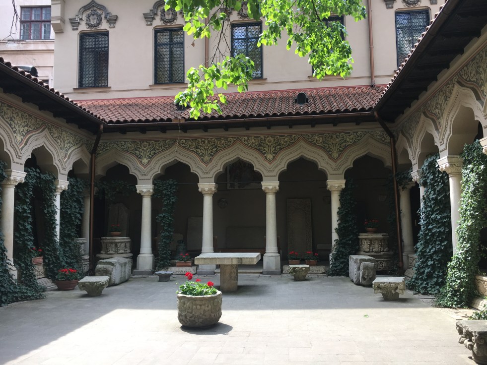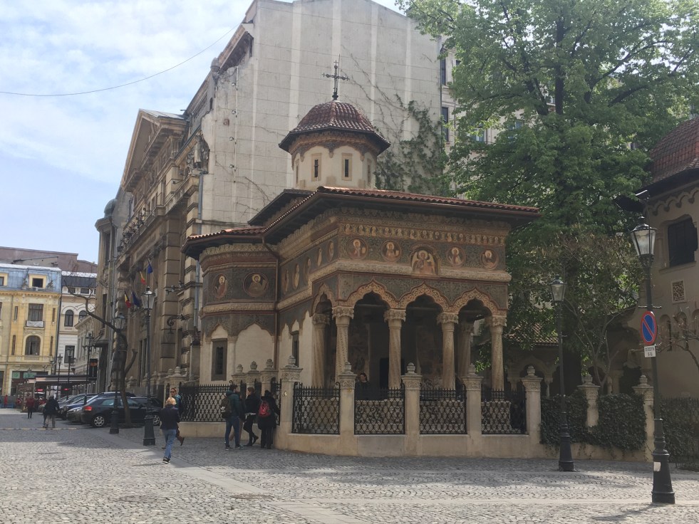 De lá caminhamos para a Strada Victoriei, a principal avenida da cidade, onde está o coração da cidade. Desembocamos na altura da rua Lipscane, que é o point do centro histórico de Bucareste e aproveitamos para visitar o Monastério Stavropoleos, um monastério ortodoxo para monjas (85% da população romena é ortodoxa) cujo destaque é seu coro bizantino e sua biblioteca com mais de 8000 livros.