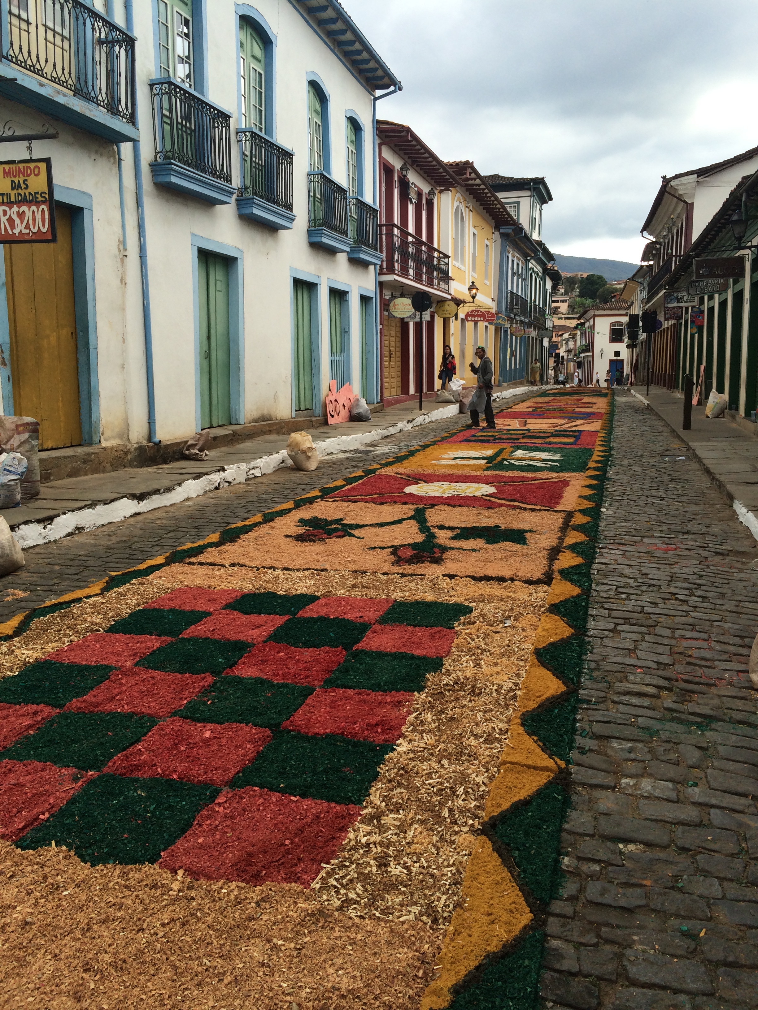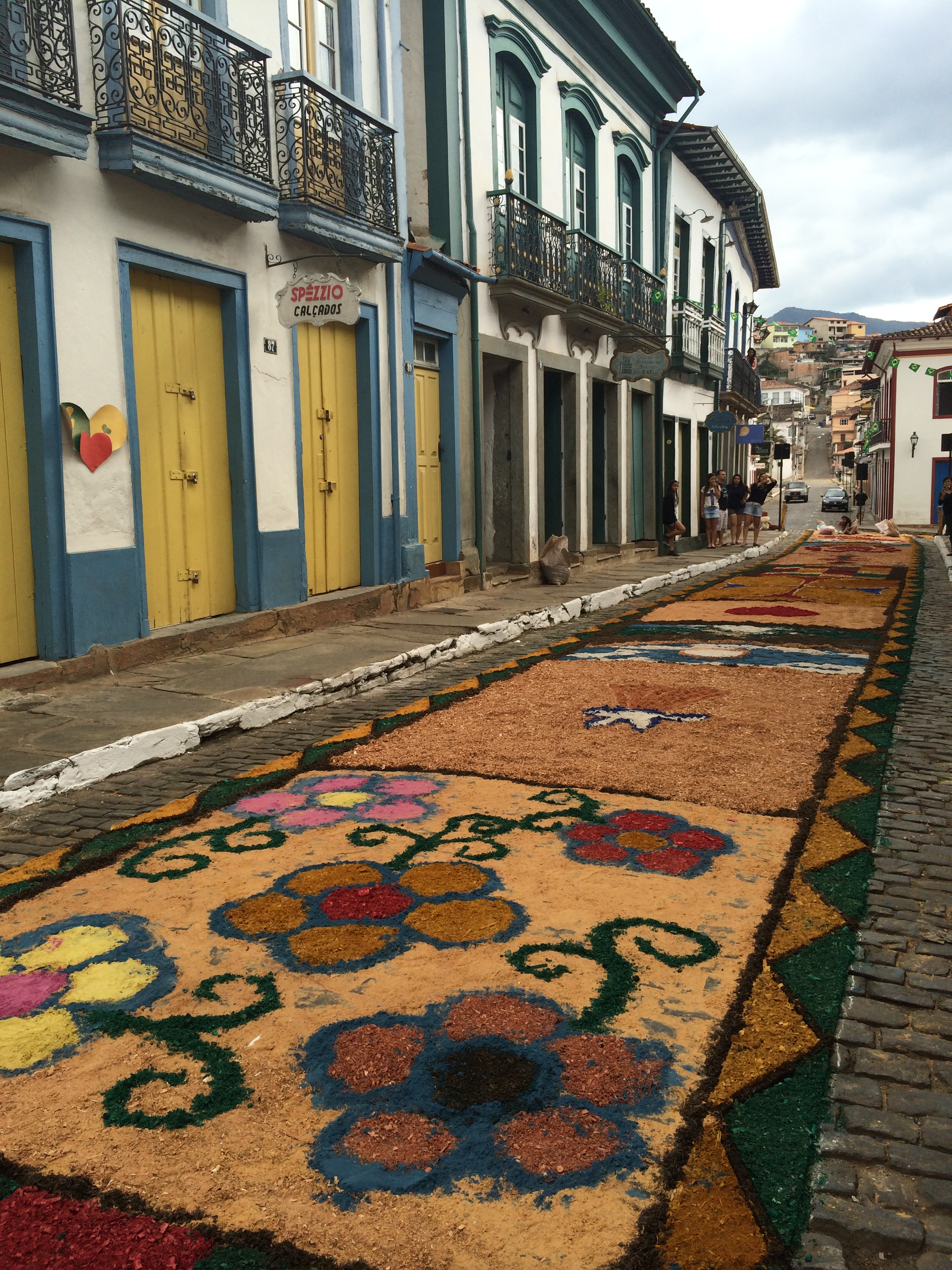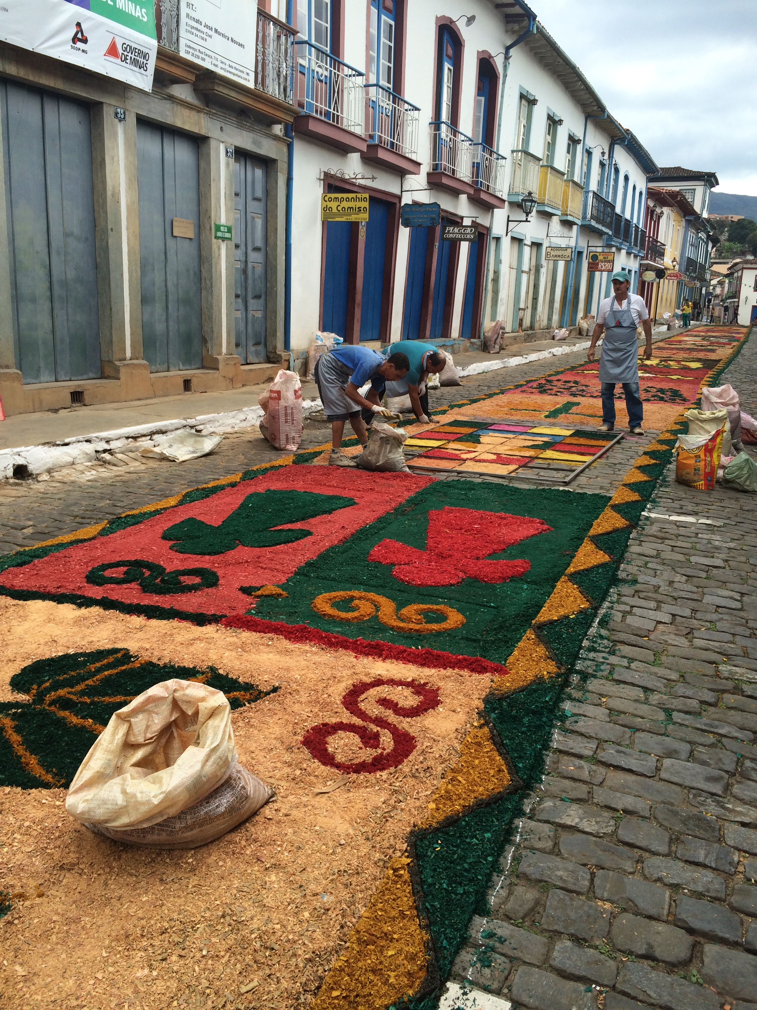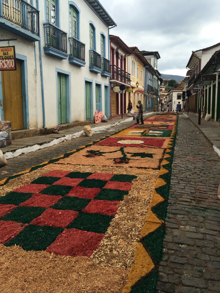 Como visitamos a cidade no feriado de Corpus Christie pudemos assistir ao espetáculo dos tapetes de cerragem colorida que se espalham por diversas ruas da cidade. Mariana é o berço da religiosidade mineira, tendo abrigado o primeiro bispado de Minas há 250 anos.