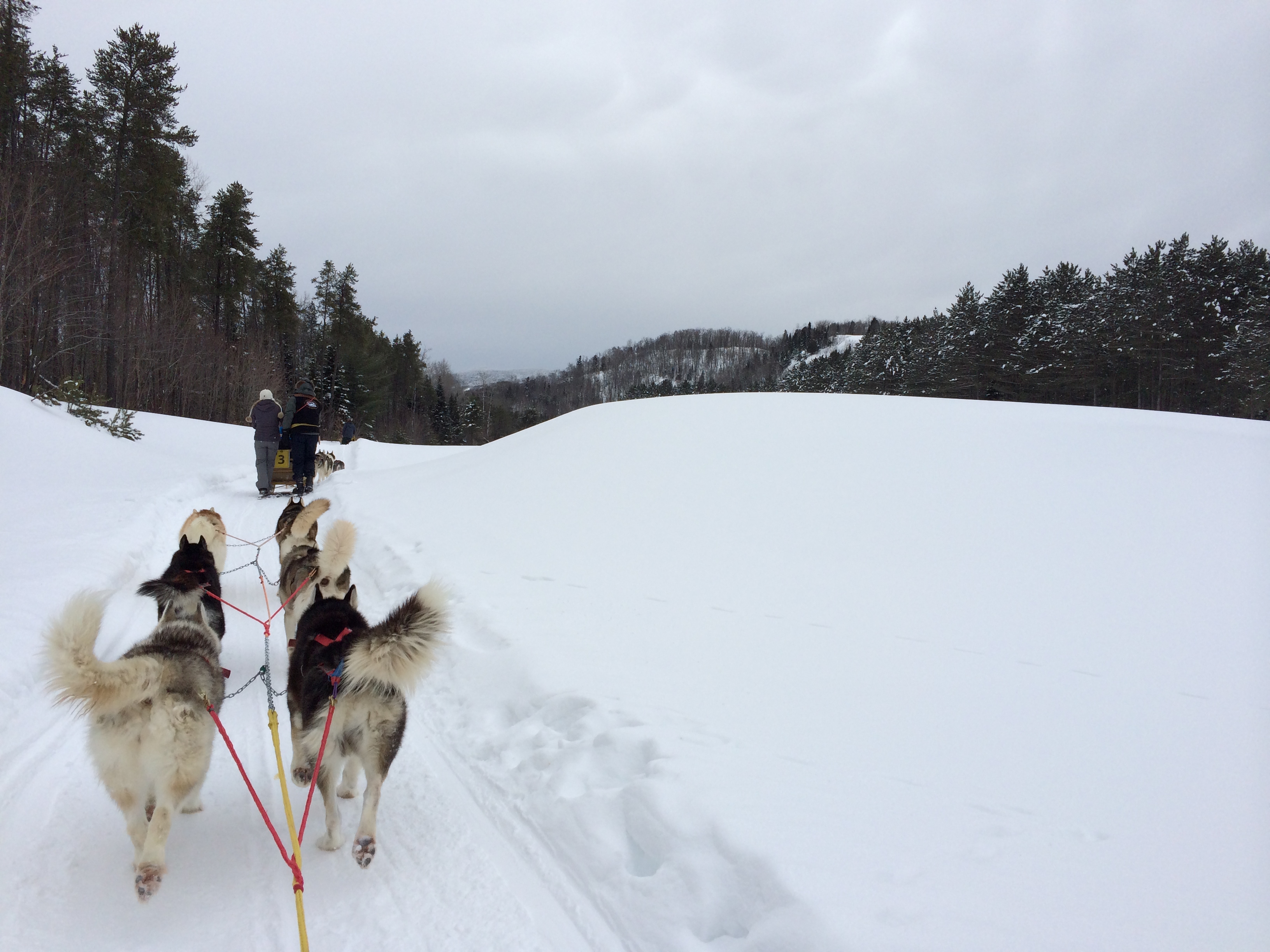 Mont Tremblant é bem charmosa principalmente porque tem muita influencia francesa e as casinhas seguem um estilo mais europeu. Mas nao foi a arquitetura que mais nos marcou na cidade, mas sim, o passeio de trenó com os cachorros pelos bosques nevados. Pesquisei muito antes de fechar no próprio site do Mont Tremblant Activity Center, que é onde acontece a atividade, e li vários relatos que descreviam a atividade como sensacional, indescritível… tantas críticas positivas que resolvemos arriscar e foi muito legal!