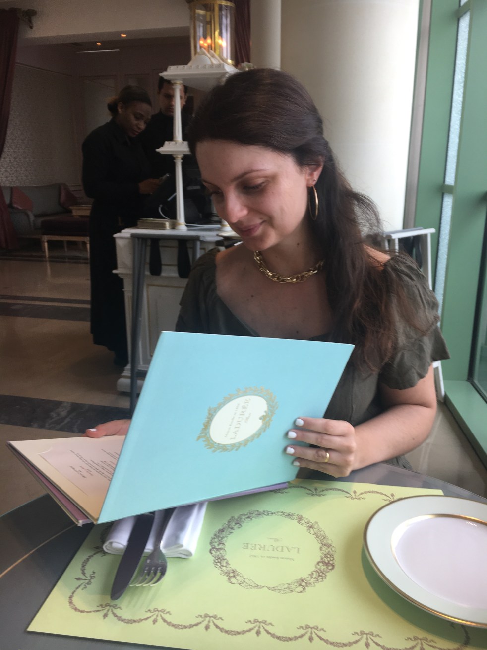 Rapidamente nos refugiamos na Ladurée que tinha um ar condicionado geladinho e iniciamos o dia tomando um café da manhã delicioso com direito a ovos Benedict e mini chocolatinhos da marca.