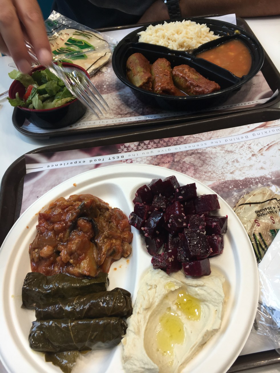 Em seguida almoçamos no Karam Beirut, um restaurante de comida libanesa boa, bonita e barata – realmente uma delícia – porque já estávamos com vontade de comer comida típica árabe. Eu simplesmente adoro porque cresci comendo comida libanesa no bairro em que minha vó morava quando era pequena, no Canindé, que era recheado de rotisseries e restaurantes libaneses, e, além disso, eu tinha muitos amigos libaneses na minha escola. Lembro que adorávamos voltar das férias porque eles sempre traziam amêndoa confeitadas do Líbano para a gente. E adorávamos fazer trabalho de grupo na cas deles, que além de enormes e lindas, tinha todos esse estilo oriental e à tarde nos serviam chá, tâmaras, amêndoas e muita goma árabe que eu sou viciada até hoje!