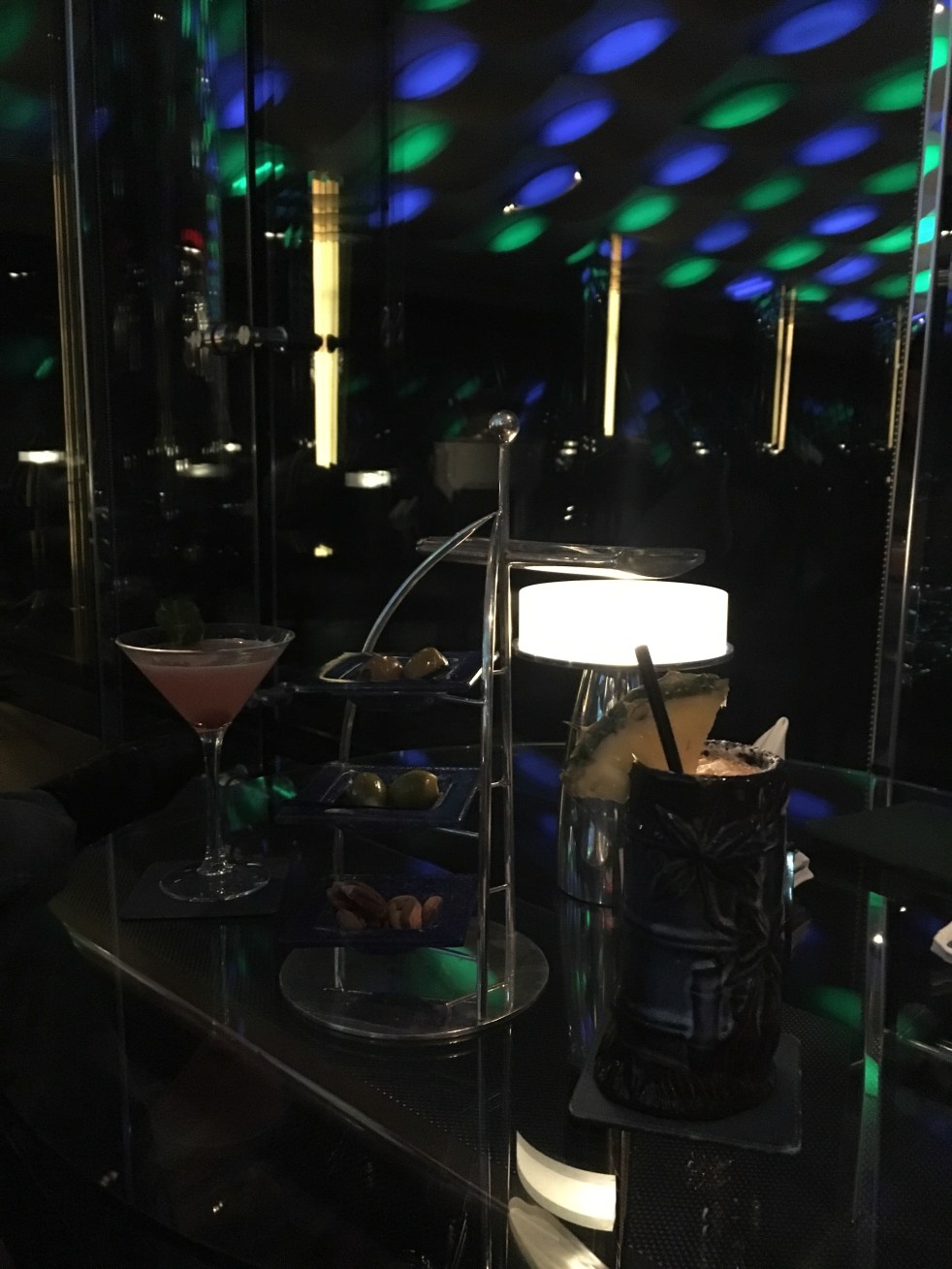 Logo em seguida nos trouxeram a carta com a lista de drinks incluída no pacote que haviamos compramos, que incluía 2 drinks por pessoa, que variam entre coquetéis, vinho ou cerveja e mais uns aperitivos compostos por azeitonas recheadas (enormes e deliciosas) e nuts ( macadâmias, avelãs e nozes) que eram repostos a todo momento, antes mesmo de acabar.