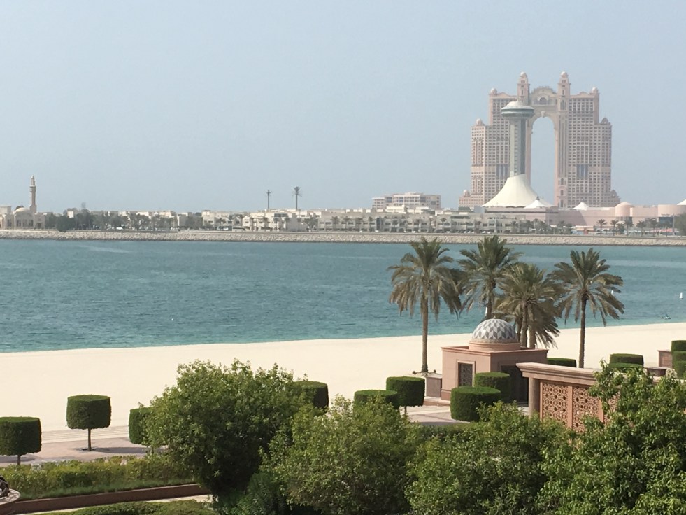 Já o caminho até o Emirates Palace é lindo e já dá para começar a sentir o clima da cidade que, na minha opiniao é bem mais vida real. Enquanto que Dubai tem uma vibe bem artificial, estilo Las Vegas, e meio cidade fantasma, porque nao tem ninguém andando na rua, Abu Dabi é bem mais peatonal, com muita gente caminhando e uma corniche com banquinhos à beira mar. Uma delícia, e dá para realmente sentir a cultura dos Emirados lá.