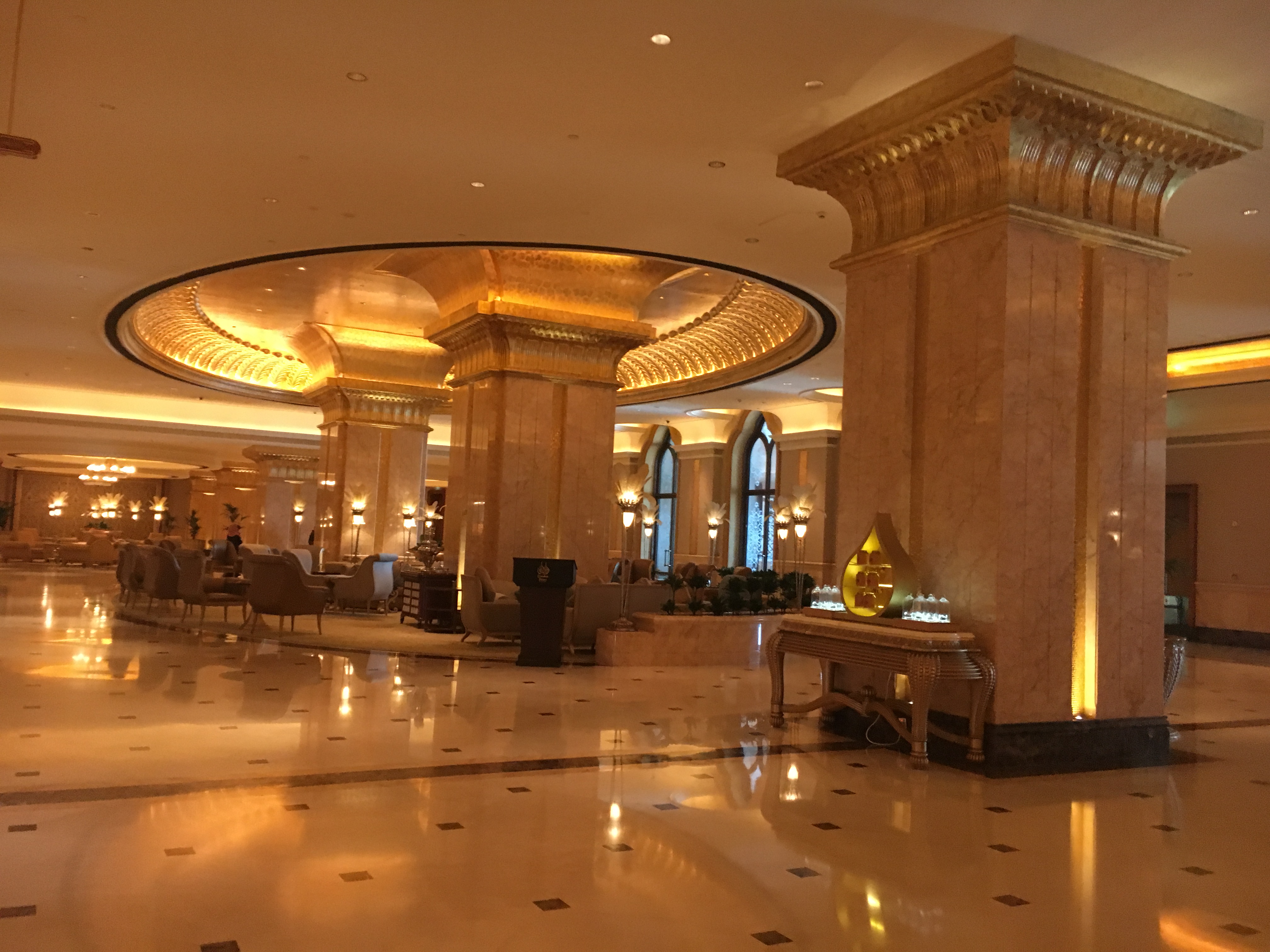A entrada é livre e você pode ir somente para visitar o saguao do hotel, que é incrívelmente decorado com mármores e trabalhos manuais islâmicos incríveis.