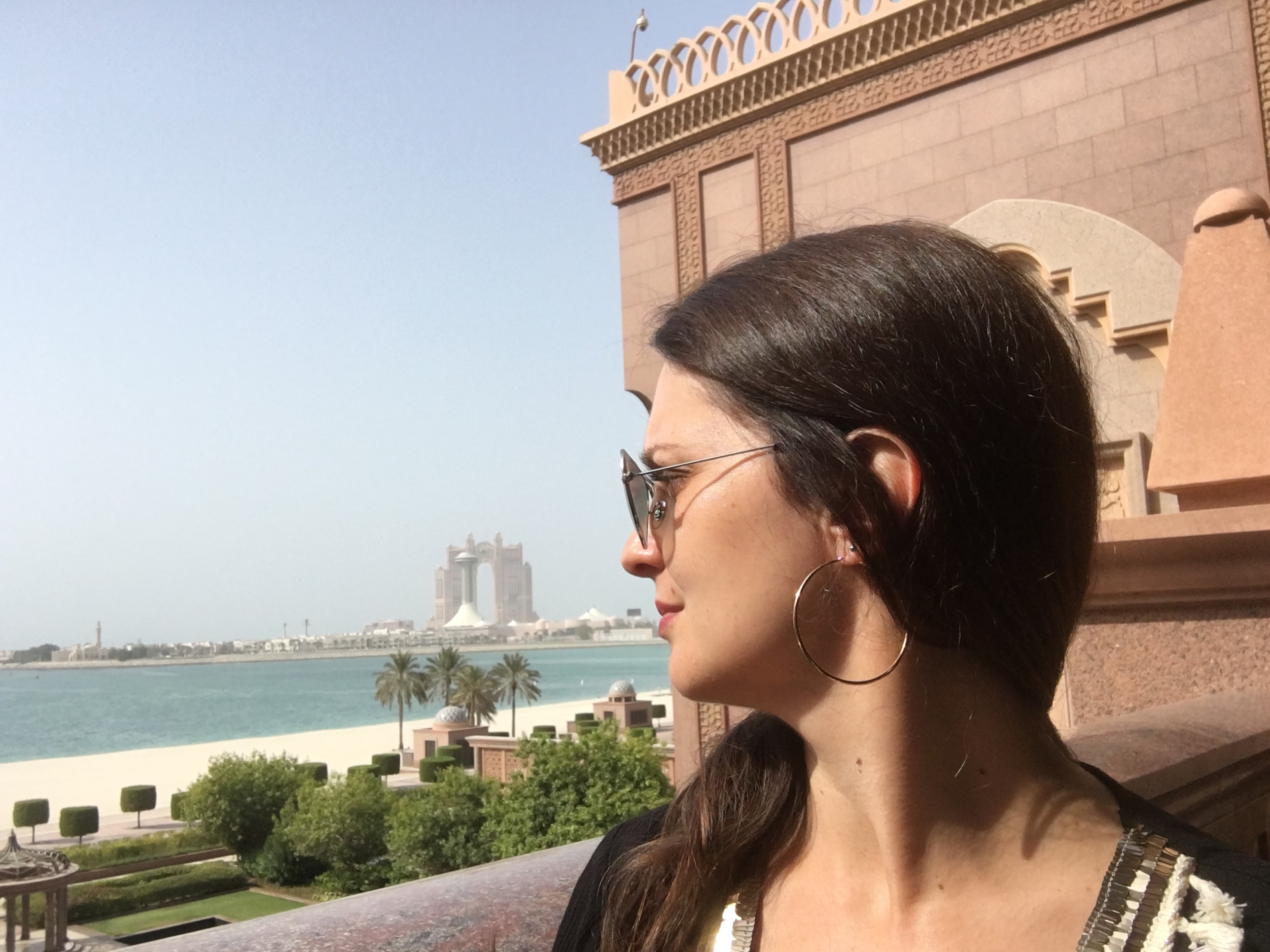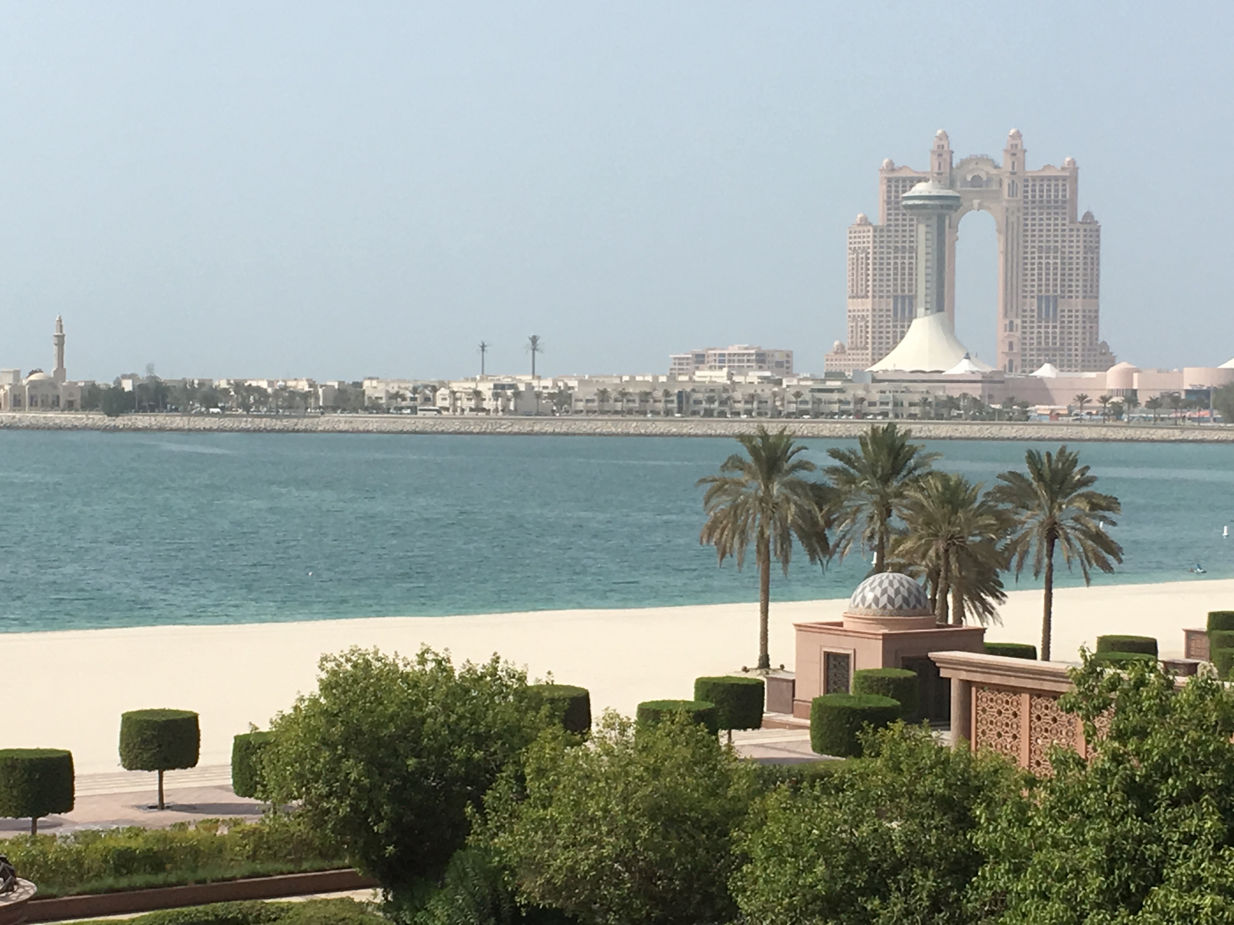 Já o caminho até o Emirates Palace é lindo e já dá para começar a sentir o clima da cidade que, na minha opiniao é bem mais vida real. Enquanto que Dubai tem uma vibe bem artificial, estilo Las Vegas, e meio cidade fantasma, porque nao tem ninguém andando na rua, Abu Dabi é bem mais peatonal, com muita gente caminhando e uma corniche com banquinhos à beira mar. Uma delícia, e dá para realmente sentir a cultura dos Emirados lá.